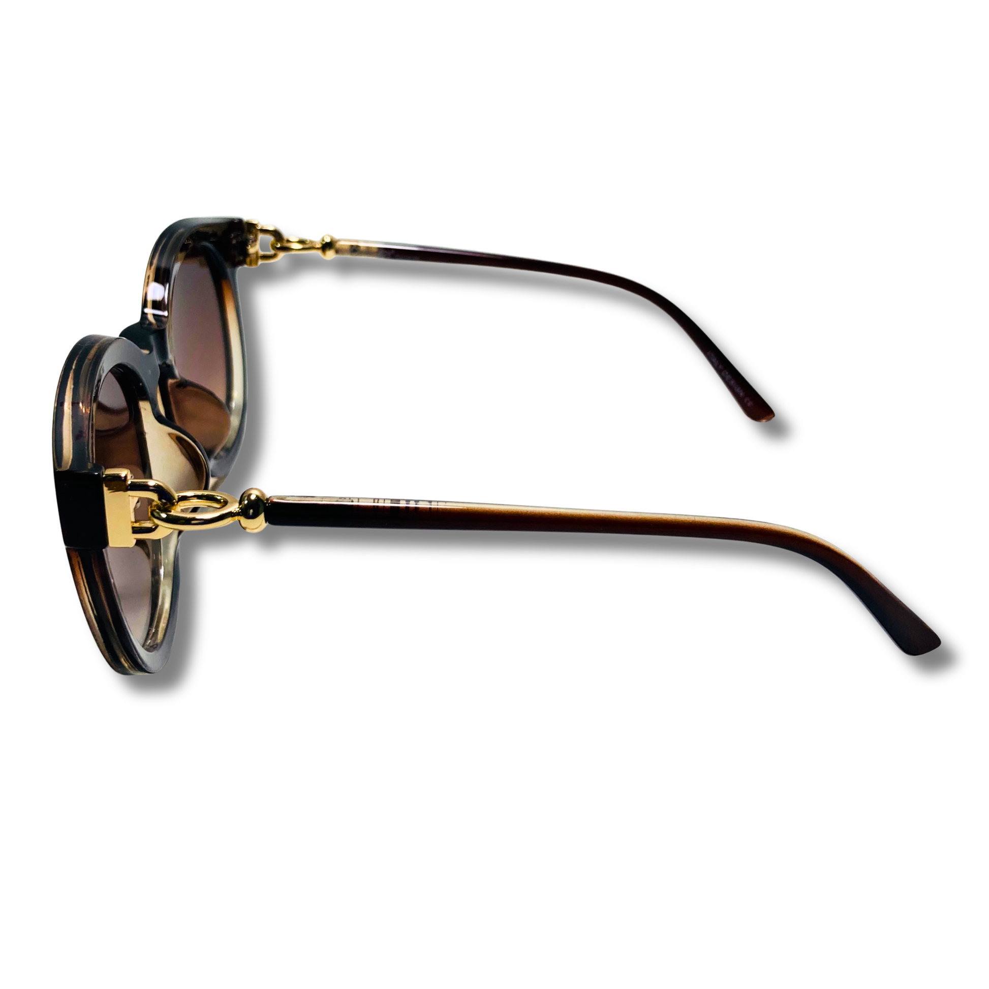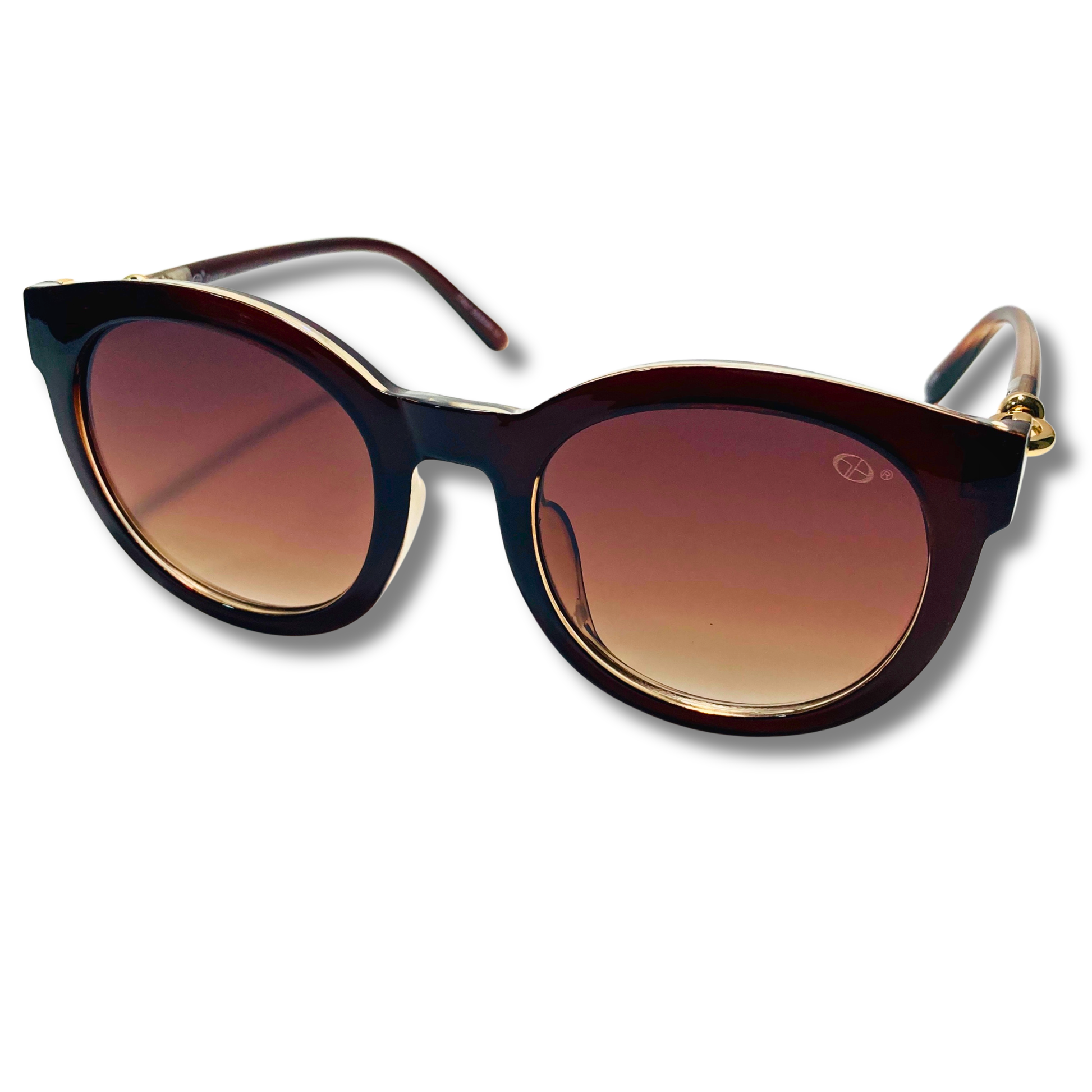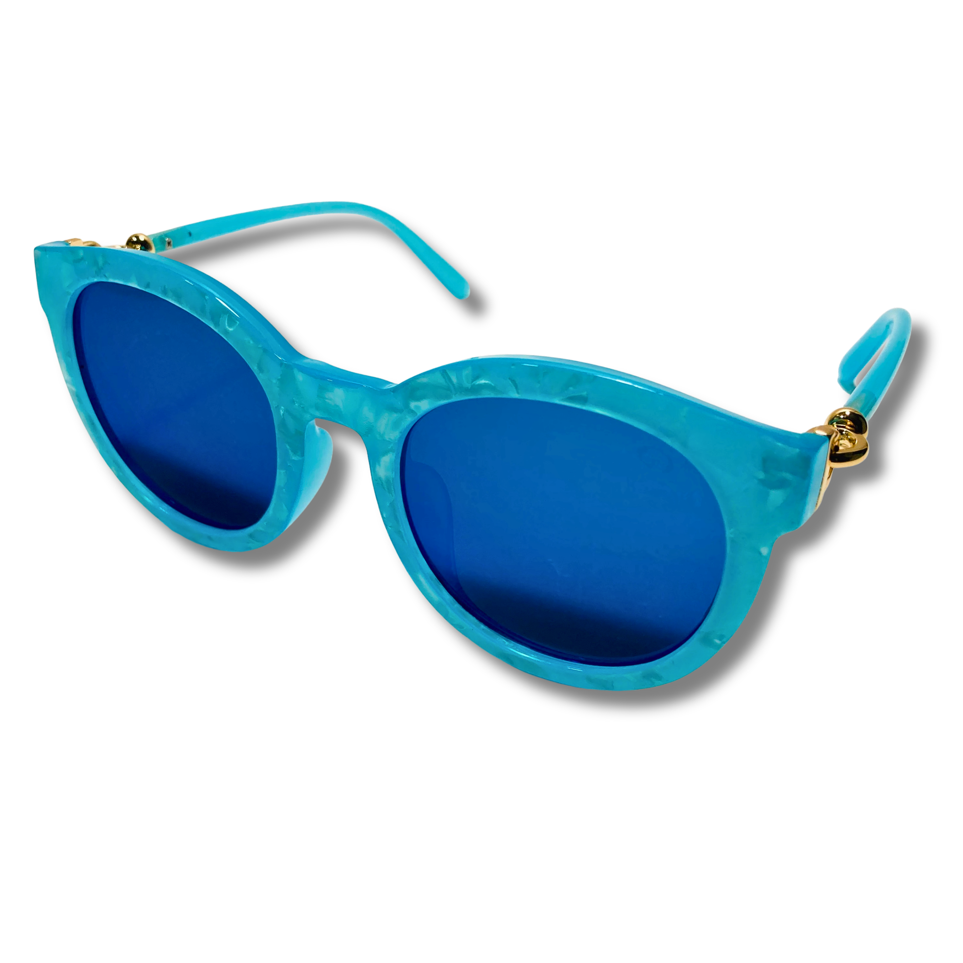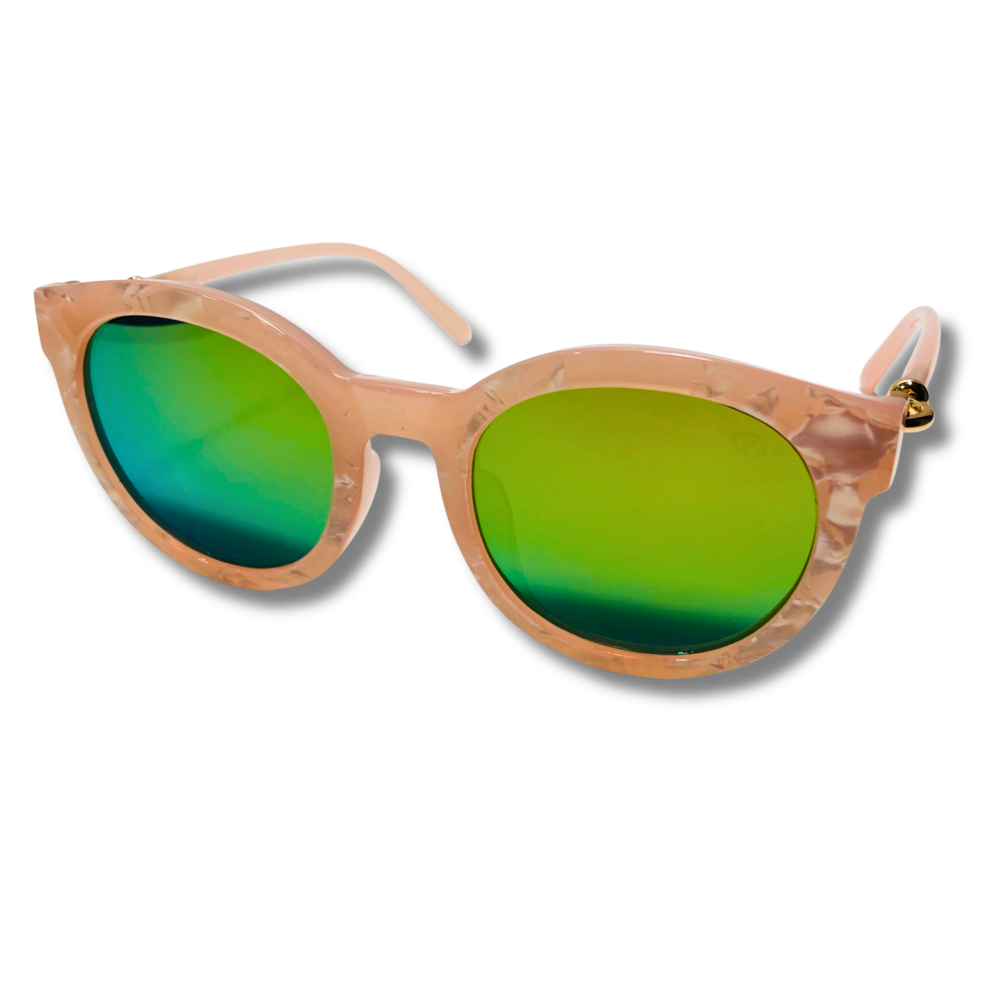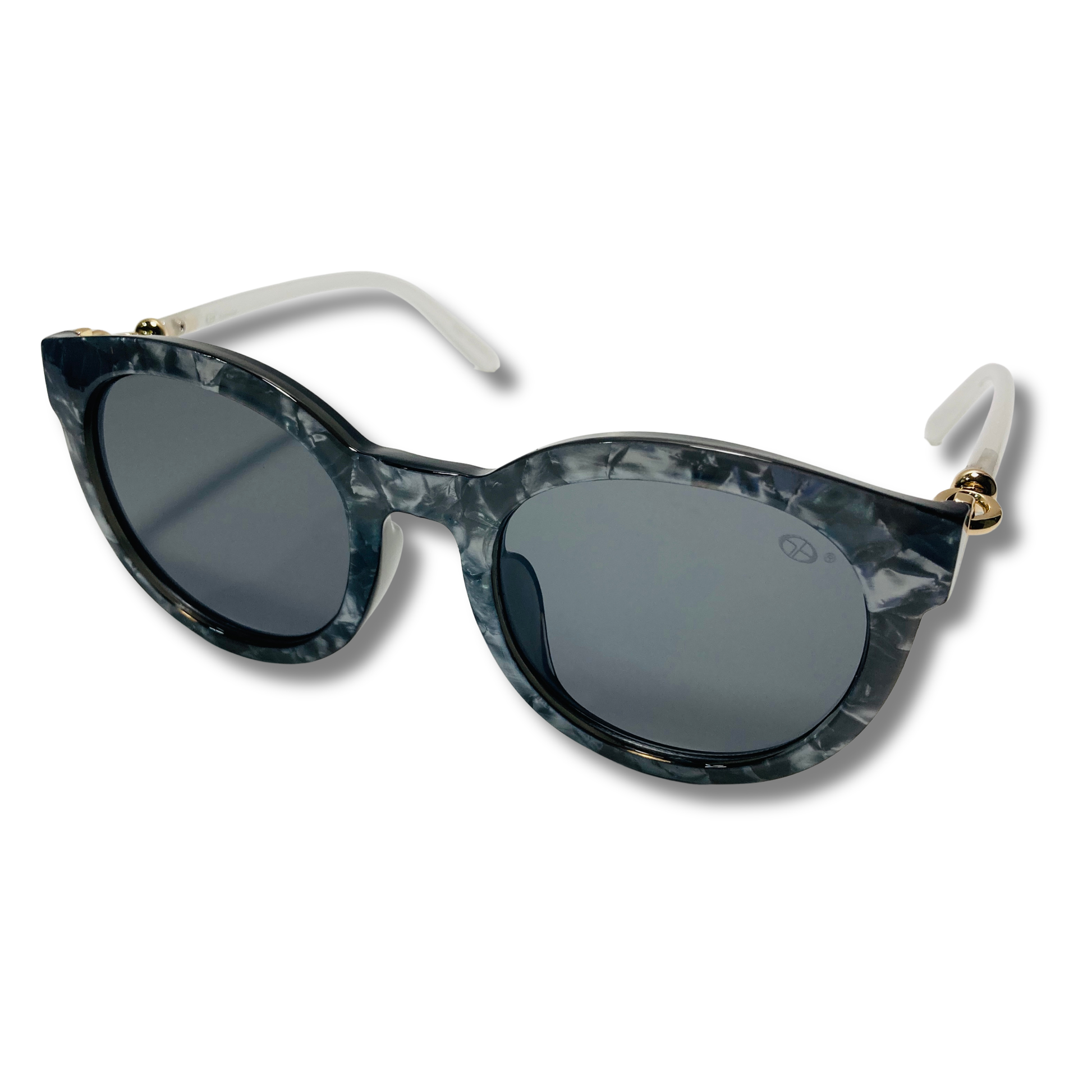 The Amethyst is the epitome of casual elegance. Featuring a slightly oversized round silhouette and stone pattern frame, the textured pattern of the frame creates a dynamic contrast to the mirrored and gradient lenses featured in the various color ways. Attaching the translucent arms to the frame is an interlocking pair of gold rings that add the perfect amount of glimmer to these refined sunglasses.