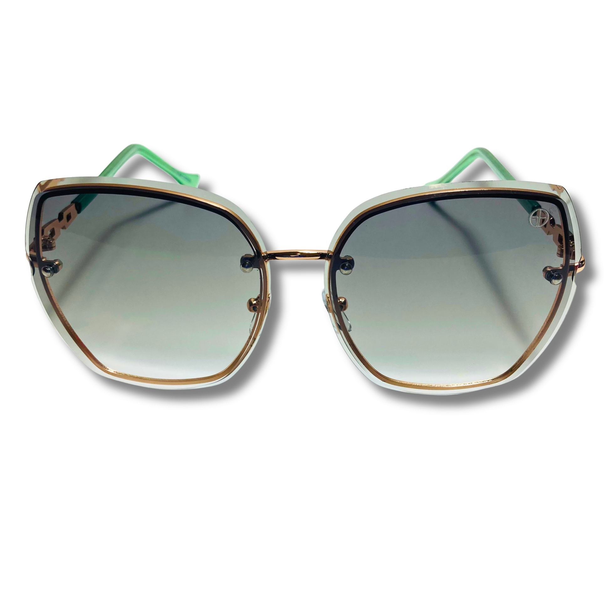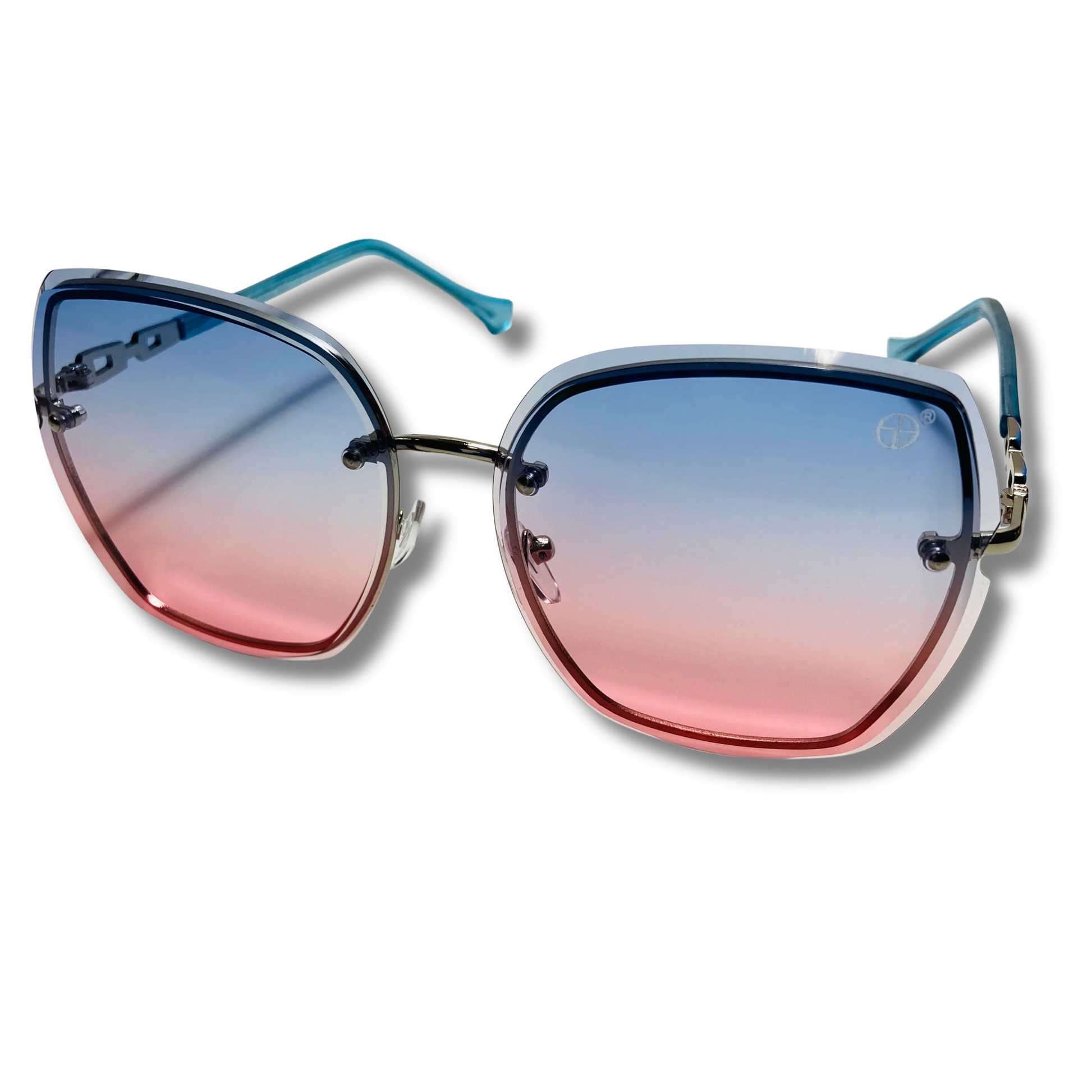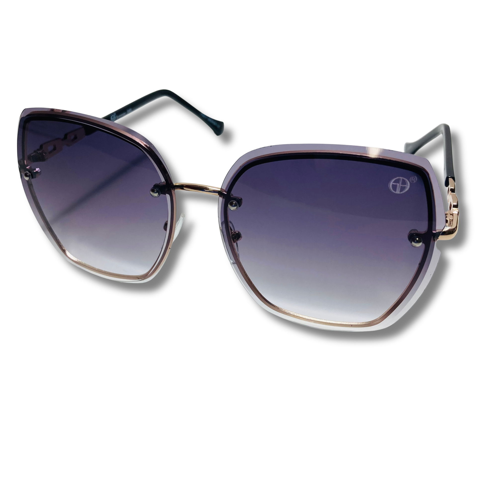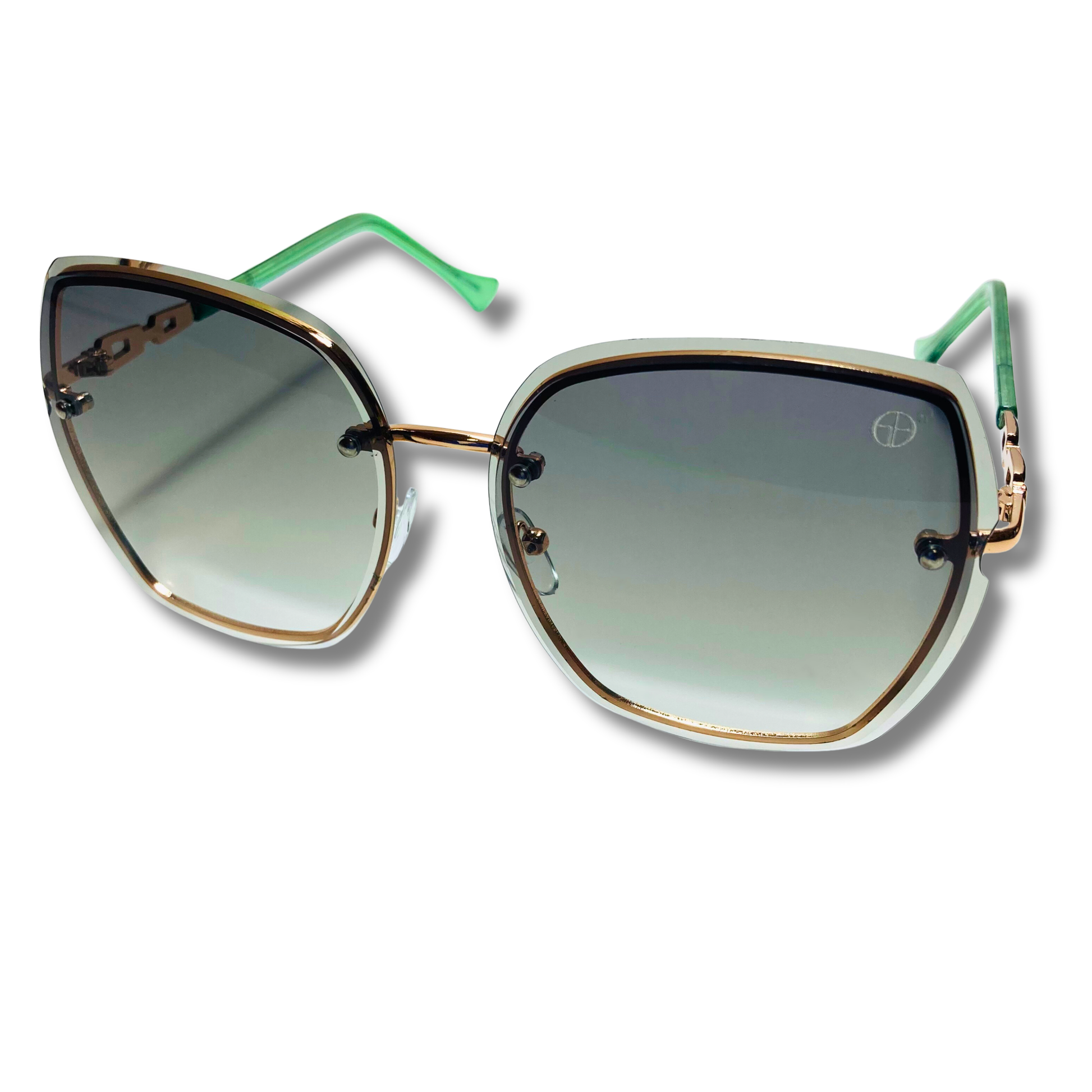 The Breezy are named as such because they belong somewhere on a white-sand Caribbean beach, perfectly complimenting a new bikini and a cocktail. These rimless oversized sunglasses feature art-deco chain link arm accents and polycarbonate lenses. Available in five colors: green, brown, pink & blue, black, and black & pink.