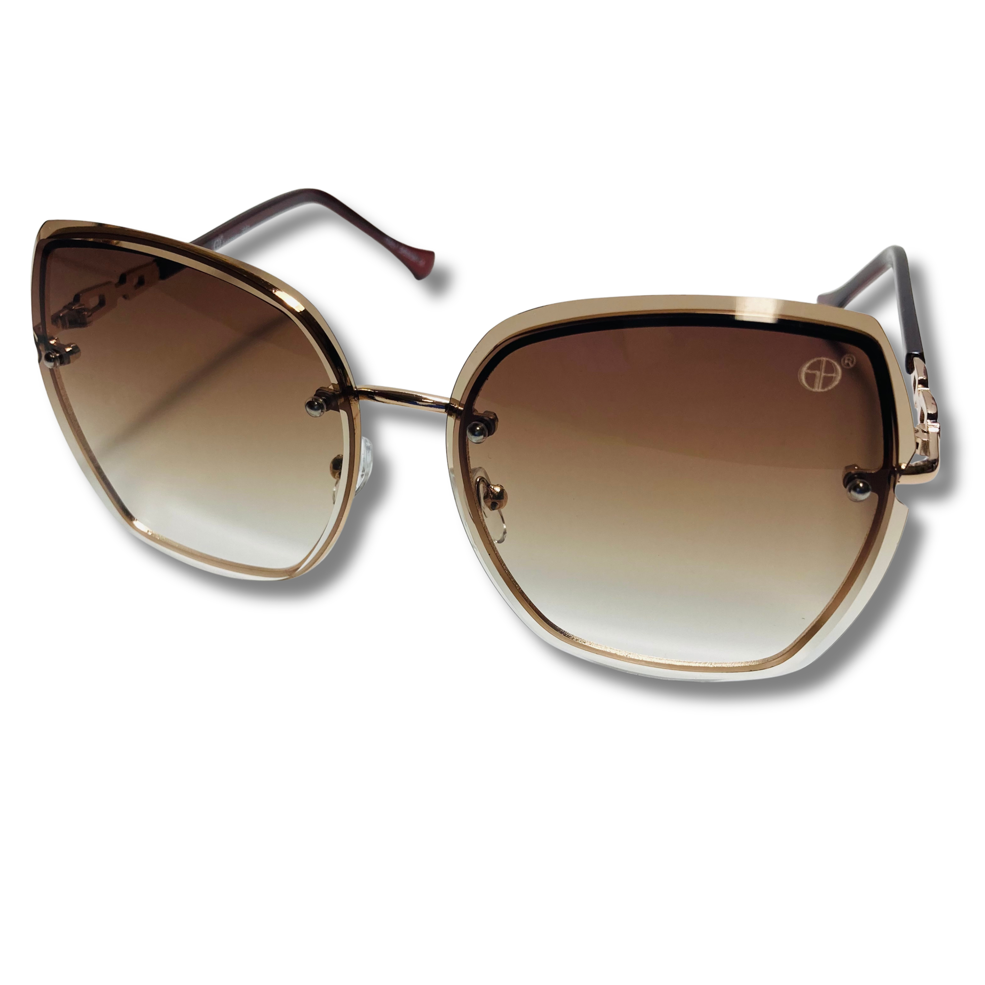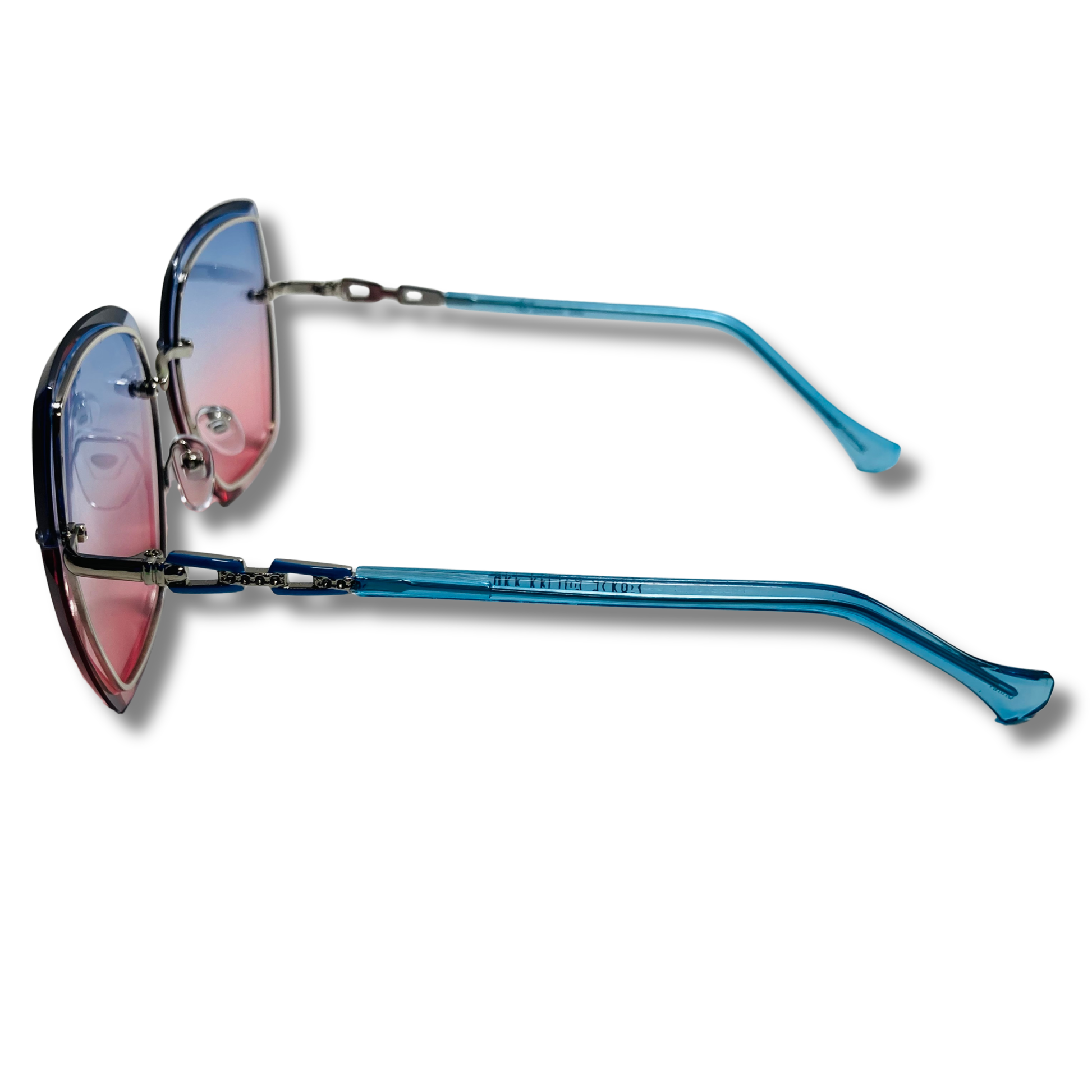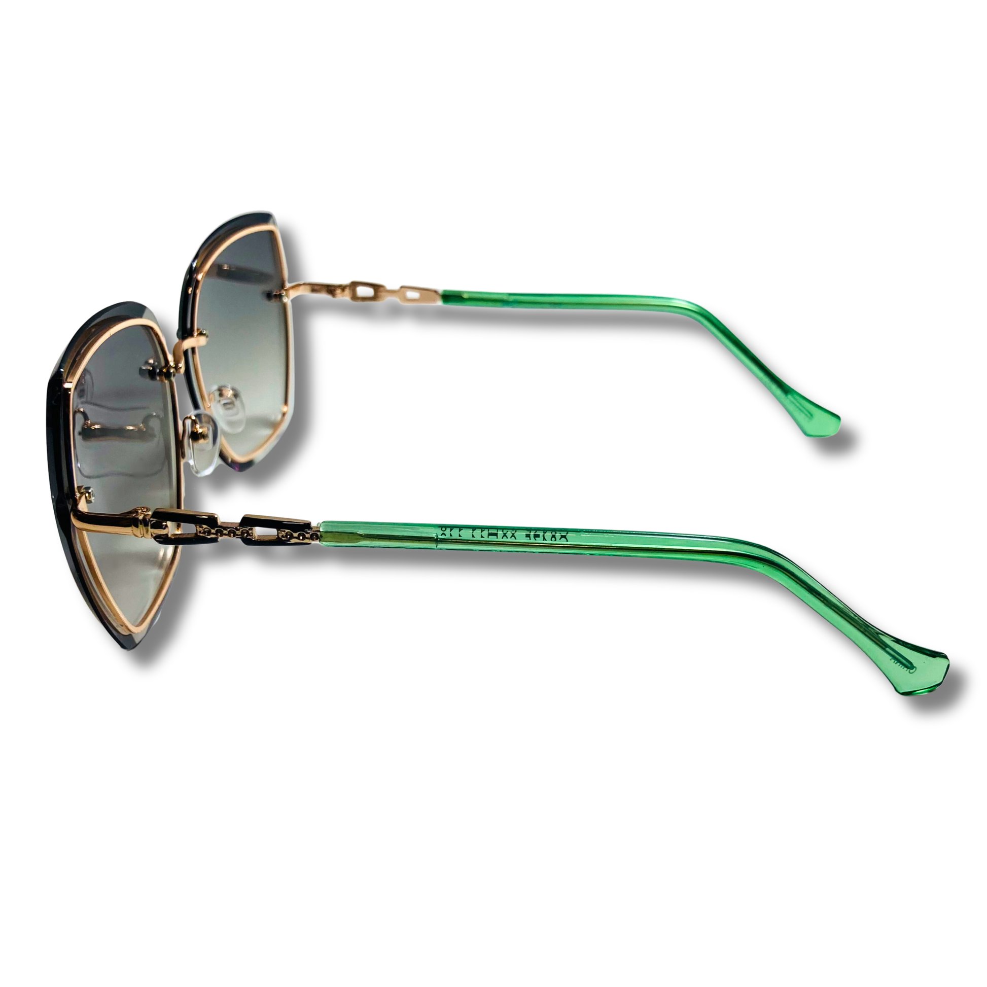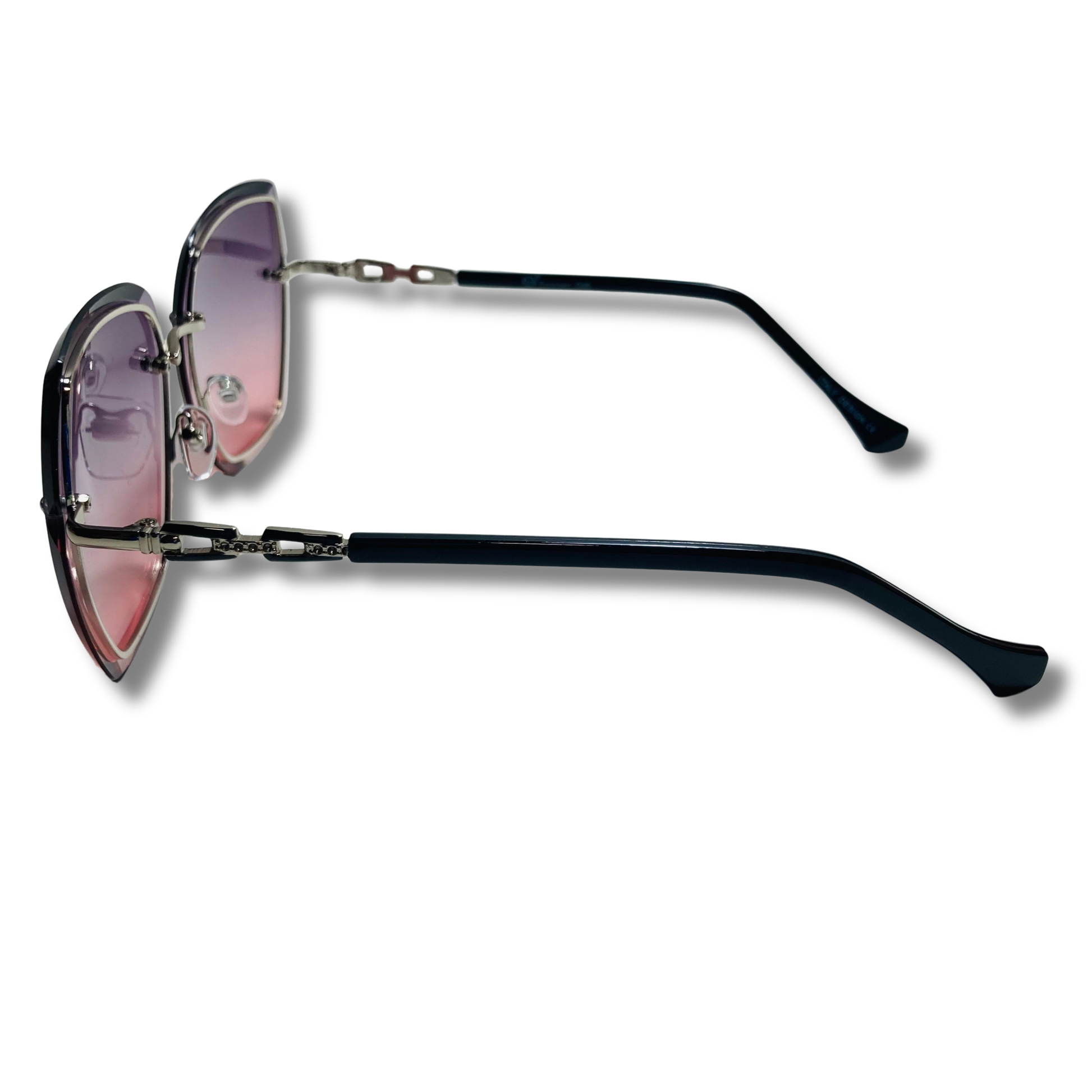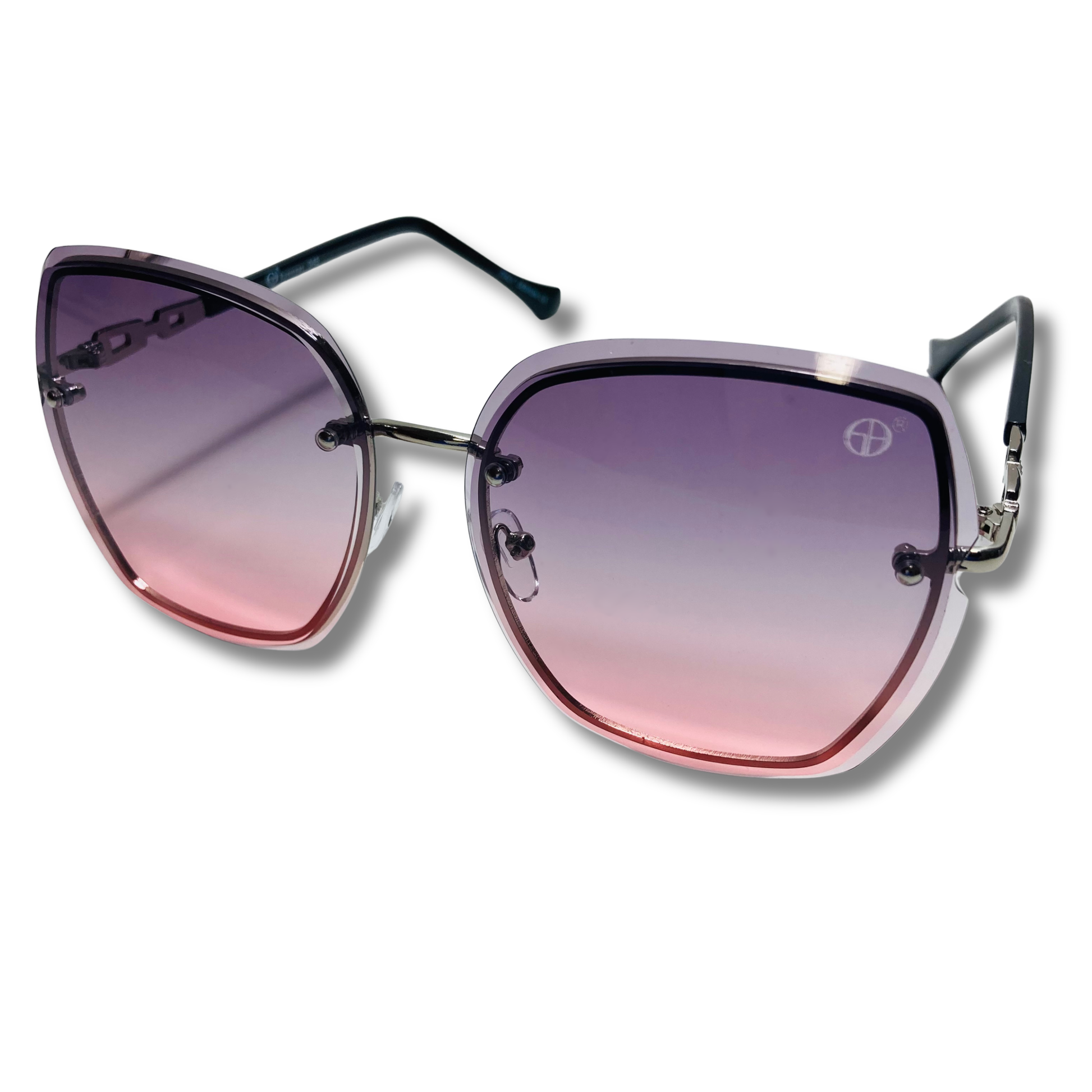 The Breezy are named as such because they belong somewhere on a white-sand Caribbean beach, perfectly complimenting a new bikini and a cocktail. These rimless oversized sunglasses feature art-deco chain link arm accents and polycarbonate lenses. Available in five colors: green, brown, pink & blue, black, and black & pink.