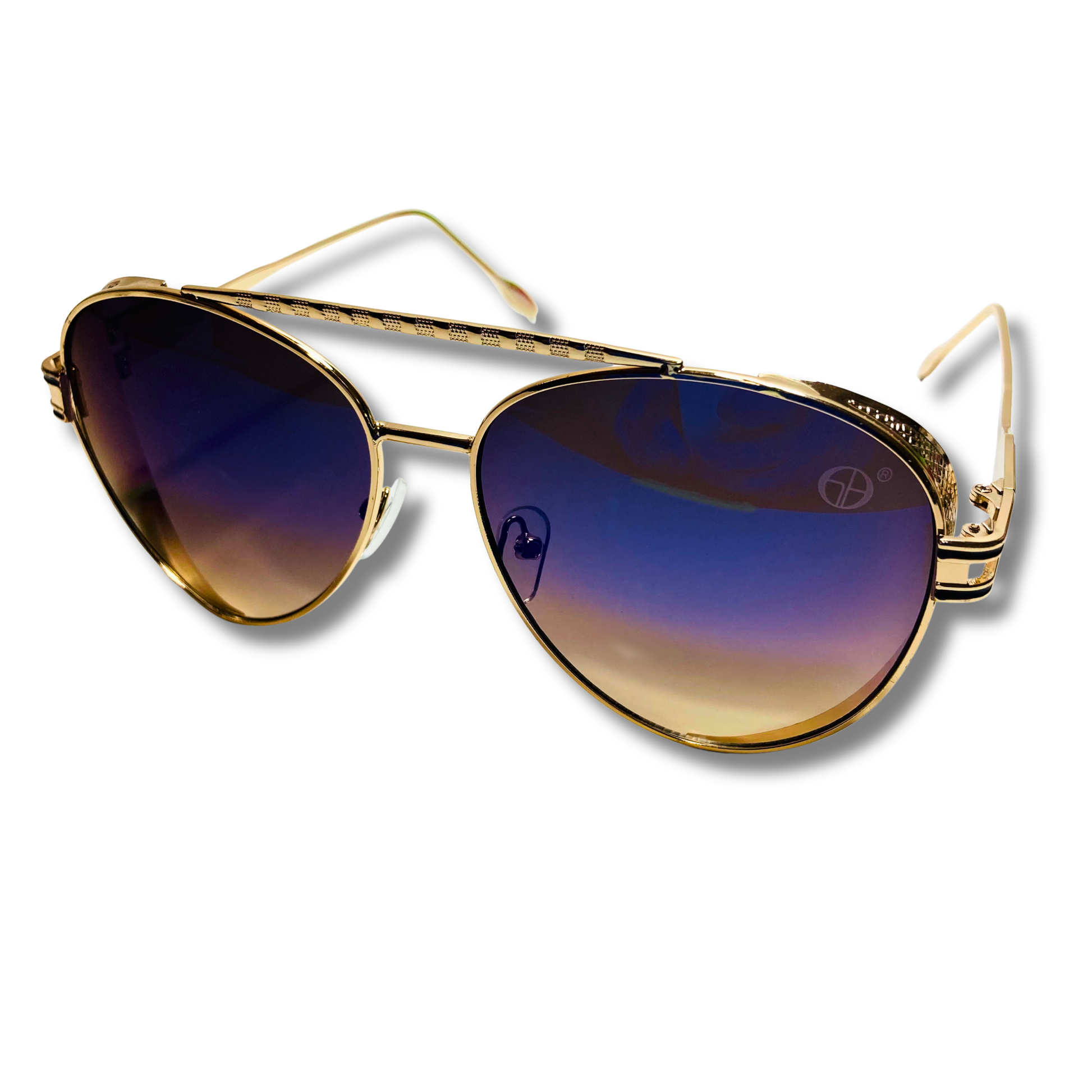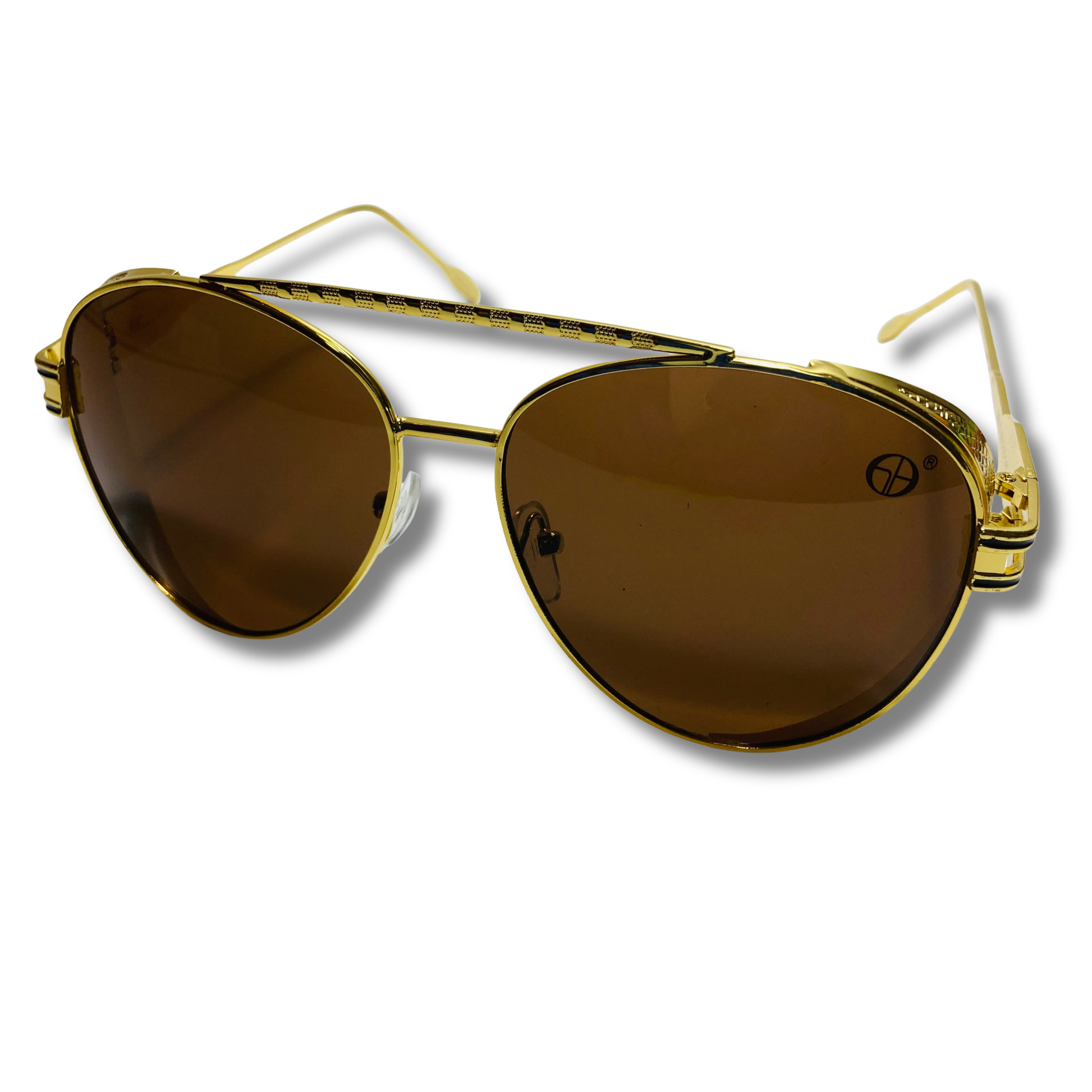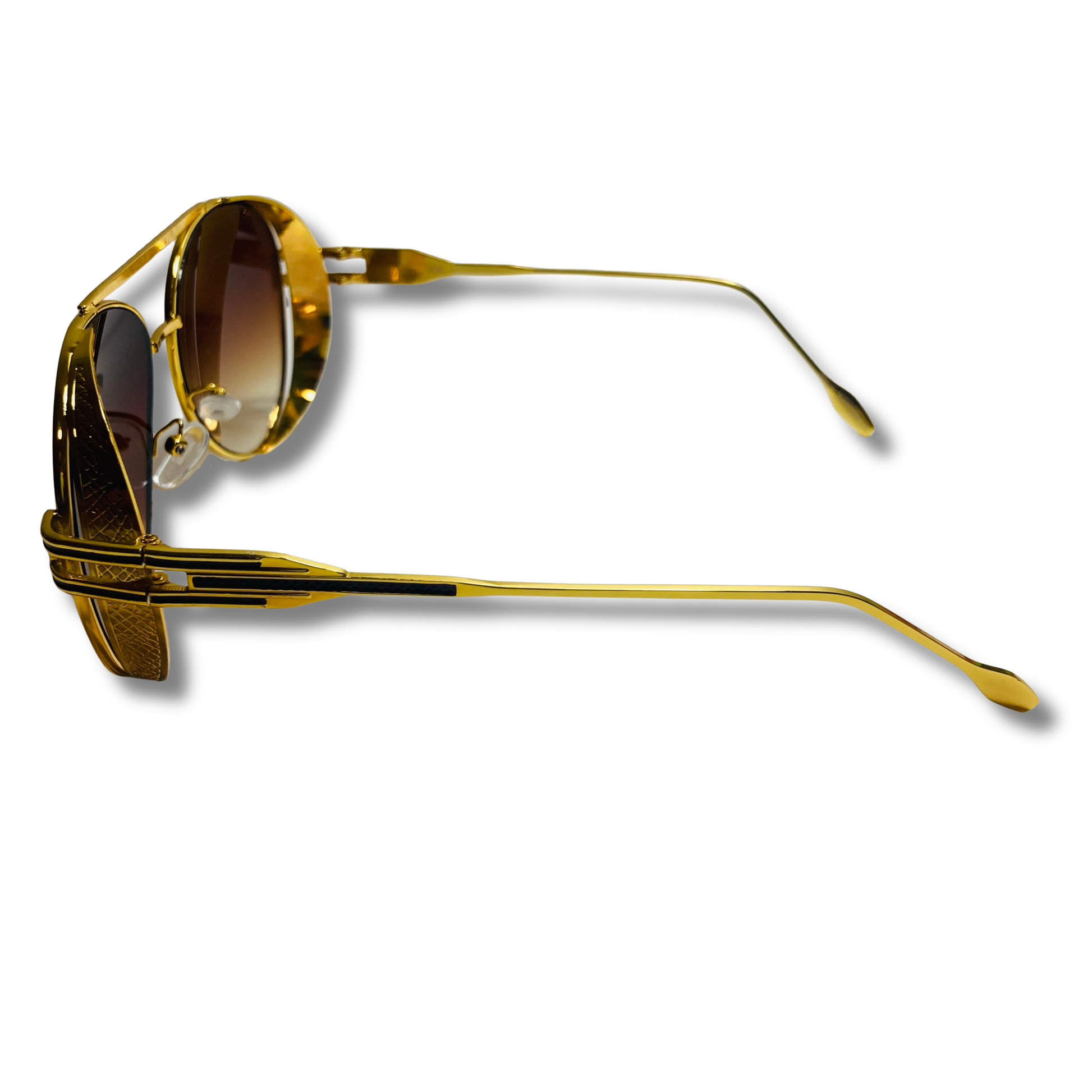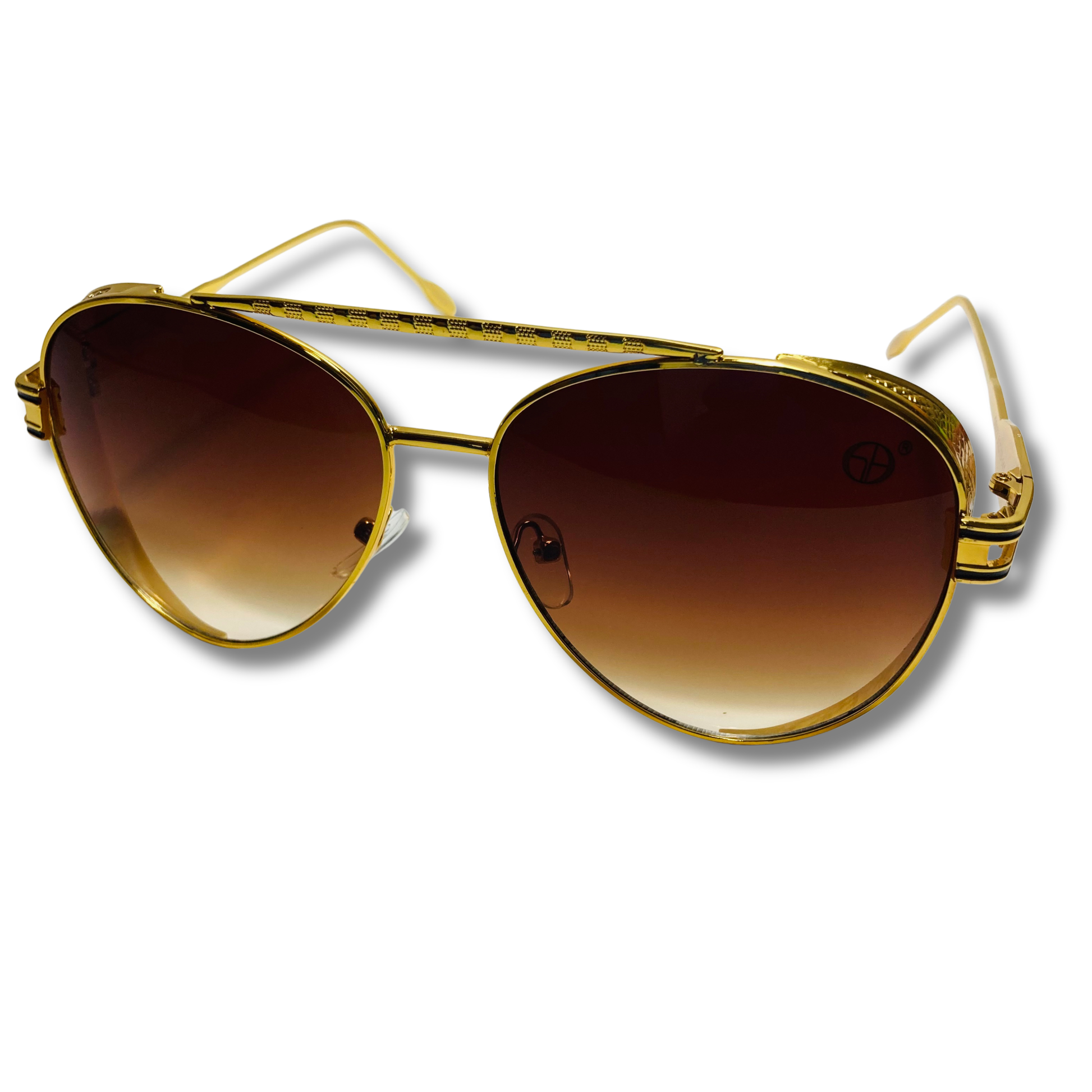 The Chapo... the king of kings, the don of dons, the boss of bosses. These heavy weight sunglasses feature an unbelievably sturdy metal frame... You could beat a rival drug lord to death with these sunglasses and then wear them to dinner. In addition to the classic aviator styling The Chapo features a textured frame with side shields and crossbar, available in five colors including options with mirrored lenses and gradient lenses: Gold & Brown Gradient, Gold & Brown, Silver & Mirrored Silver, Black, and Gold & Mirrored Blue.