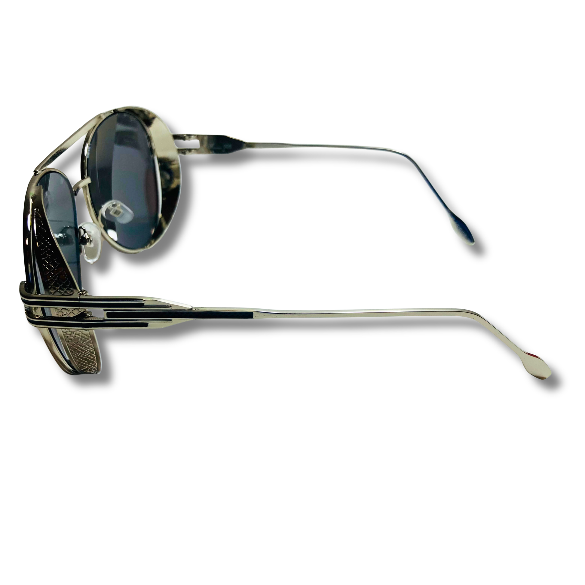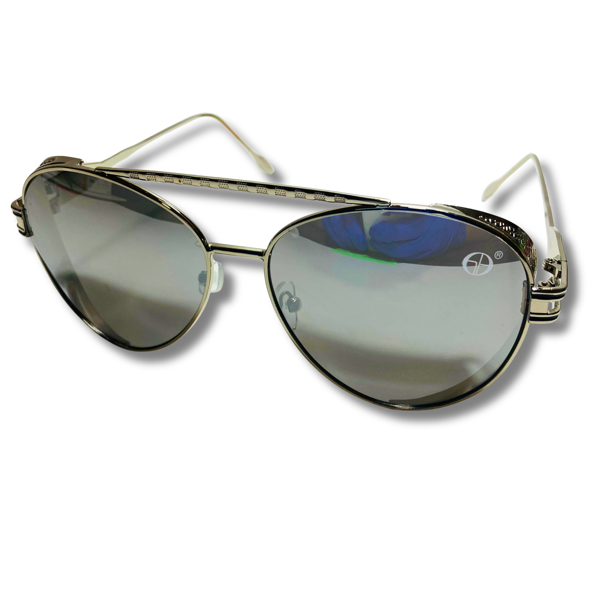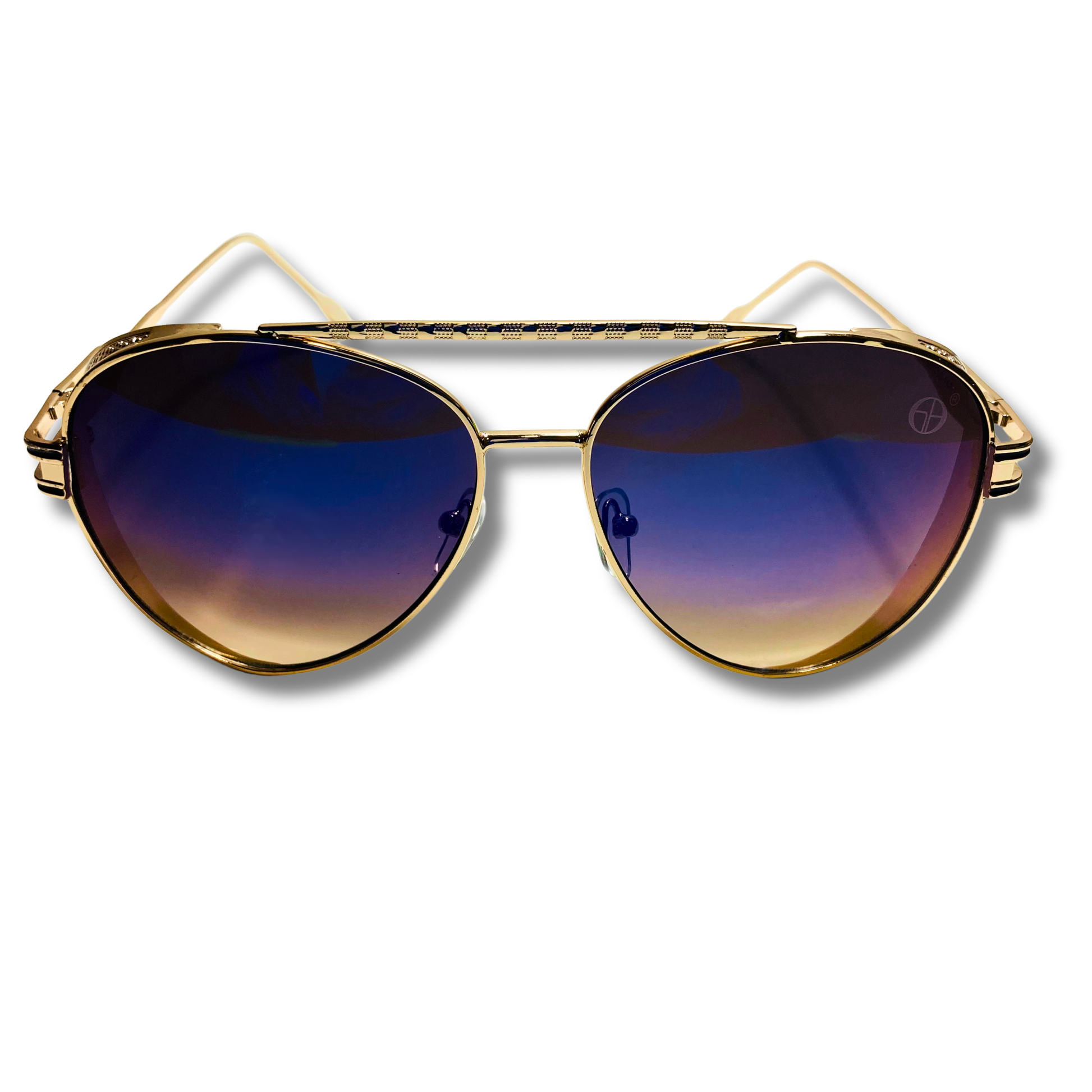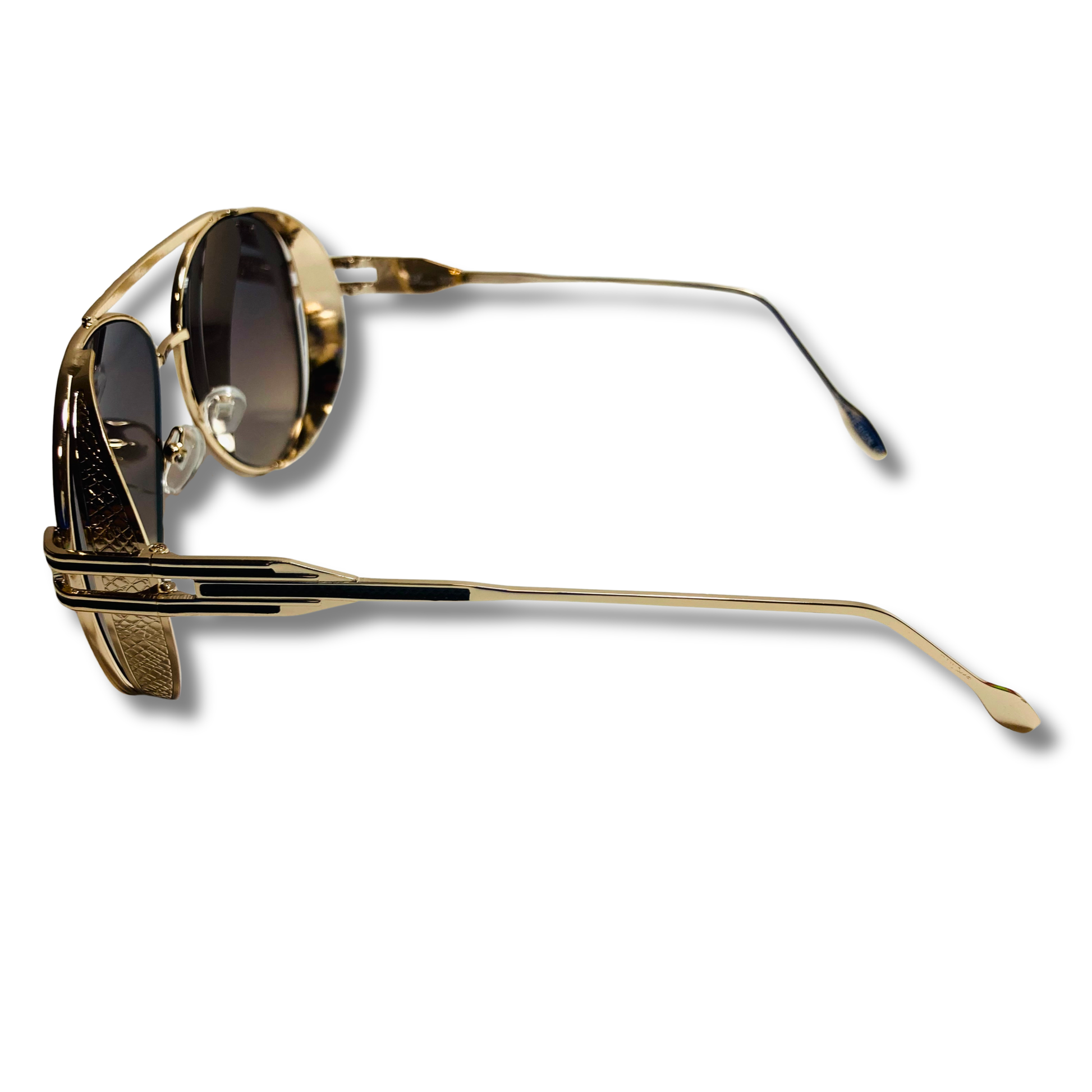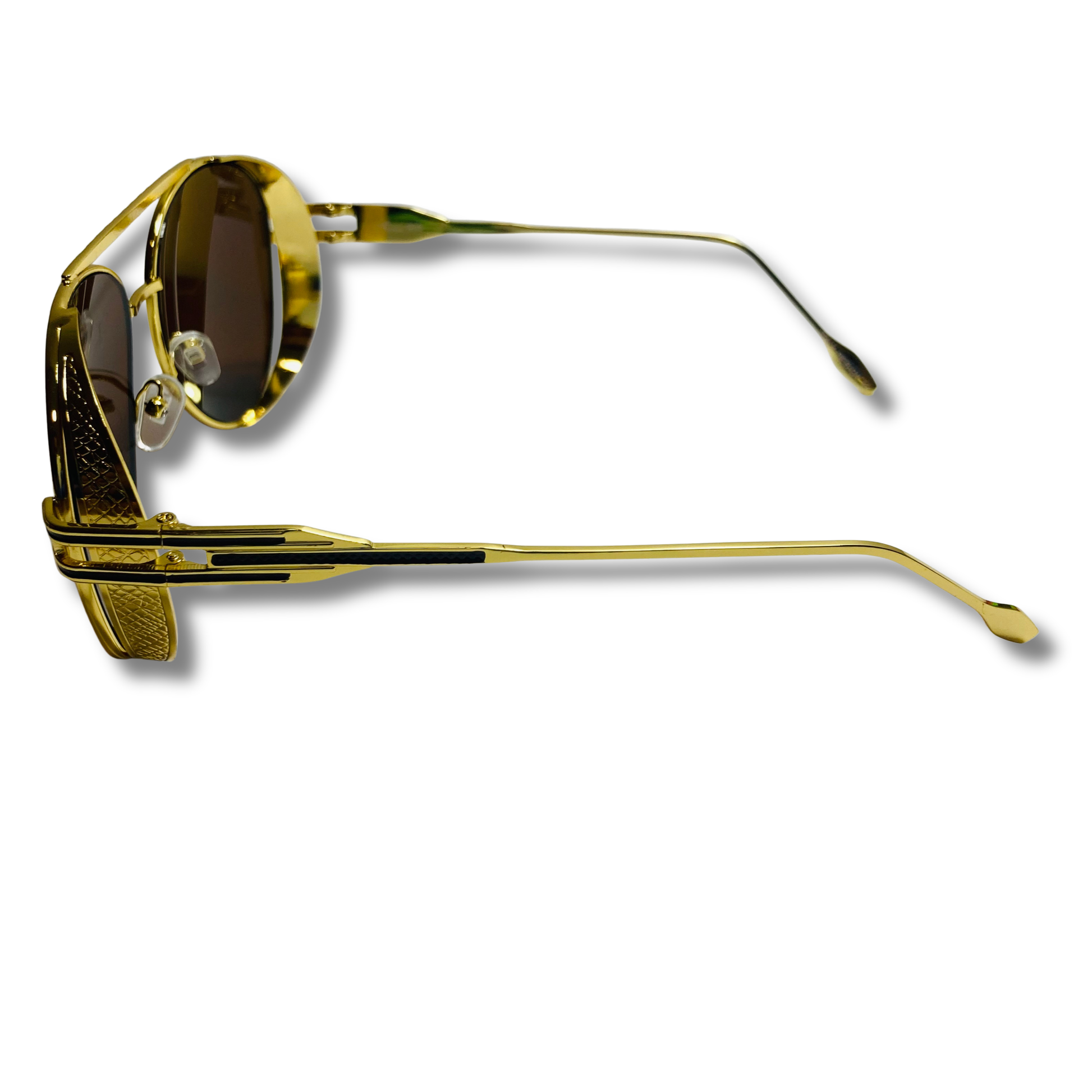 The Chapo... the king of kings, the don of dons, the boss of bosses. These heavy weight sunglasses feature an unbelievably sturdy metal frame... You could beat a rival drug lord to death with these sunglasses and then wear them to dinner. In addition to the classic aviator styling The Chapo features a textured frame with side shields and crossbar, available in five colors including options with mirrored lenses and gradient lenses: Gold & Brown Gradient, Gold & Brown, Silver & Mirrored Silver, Black, and Gold & Mirrored Blue.