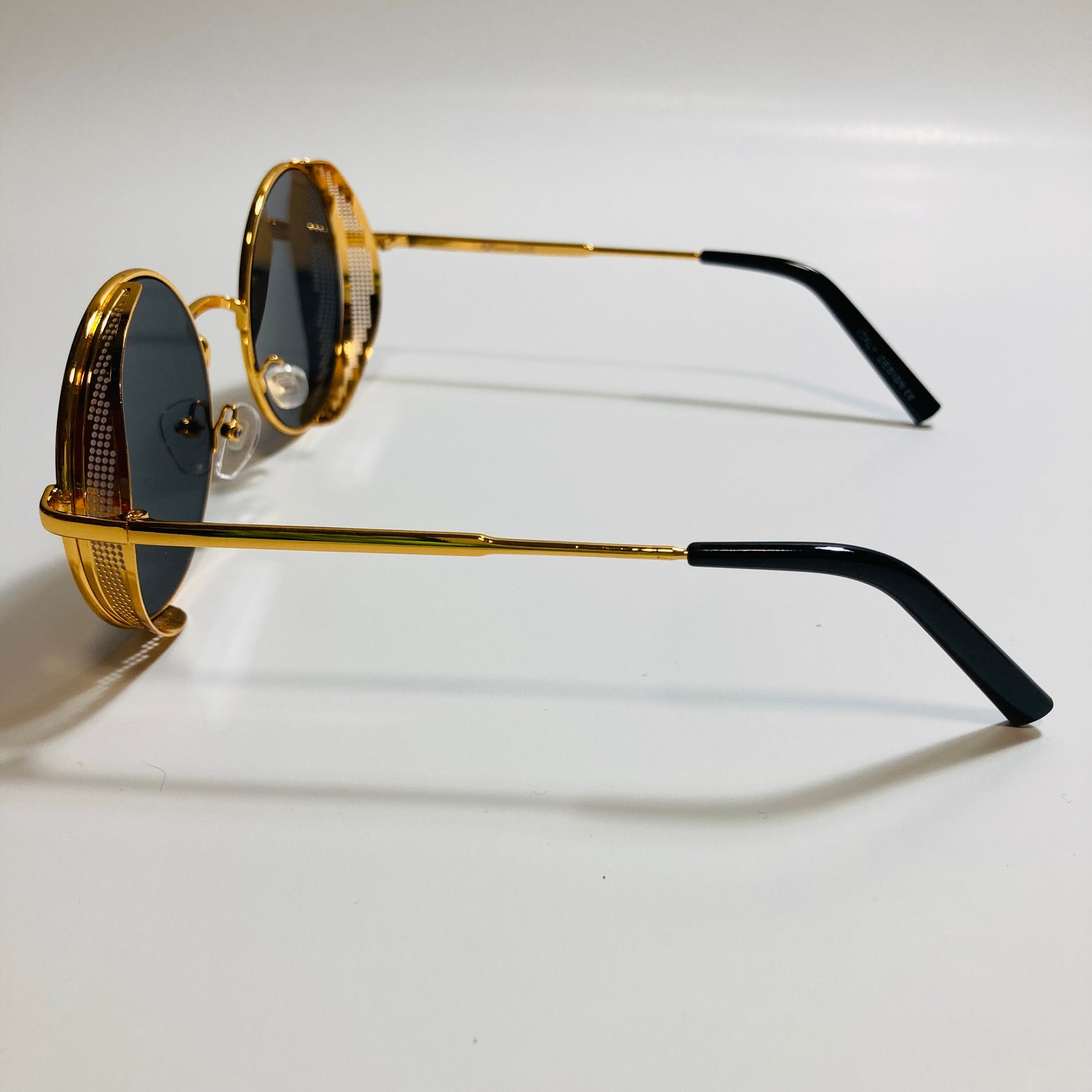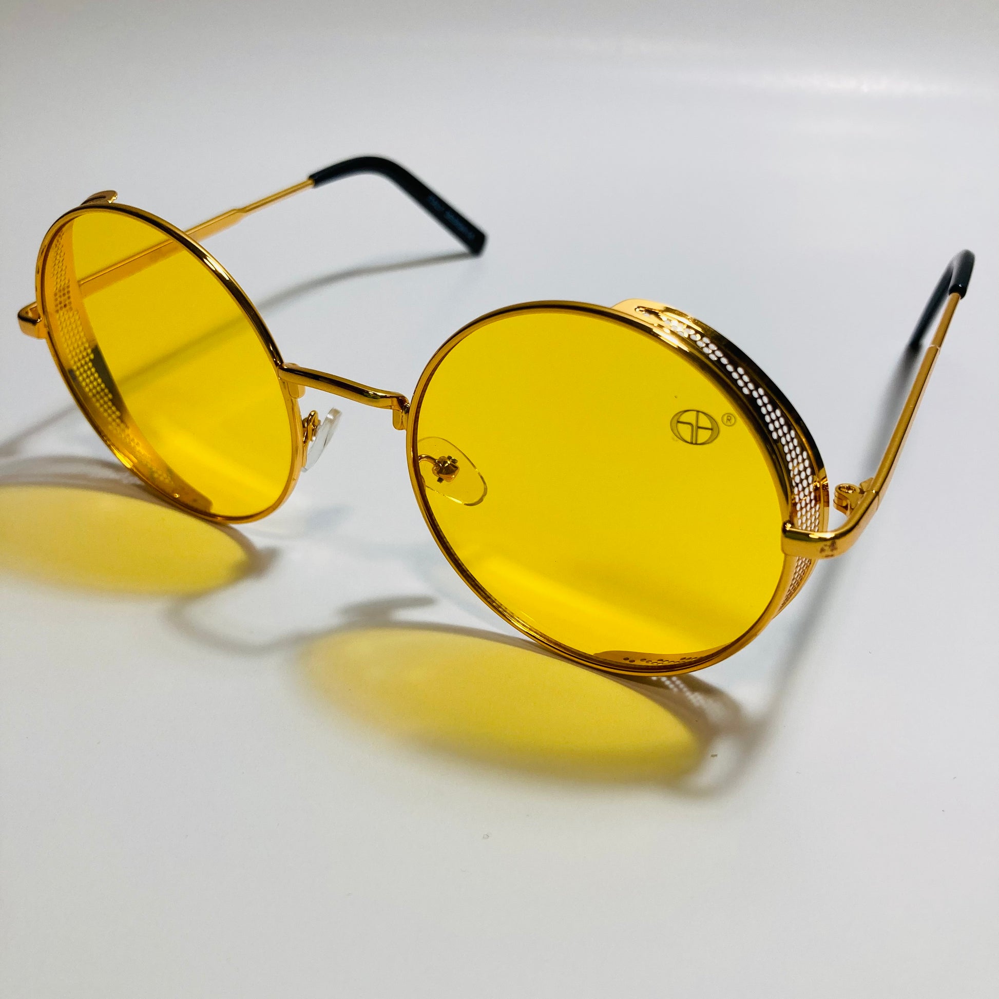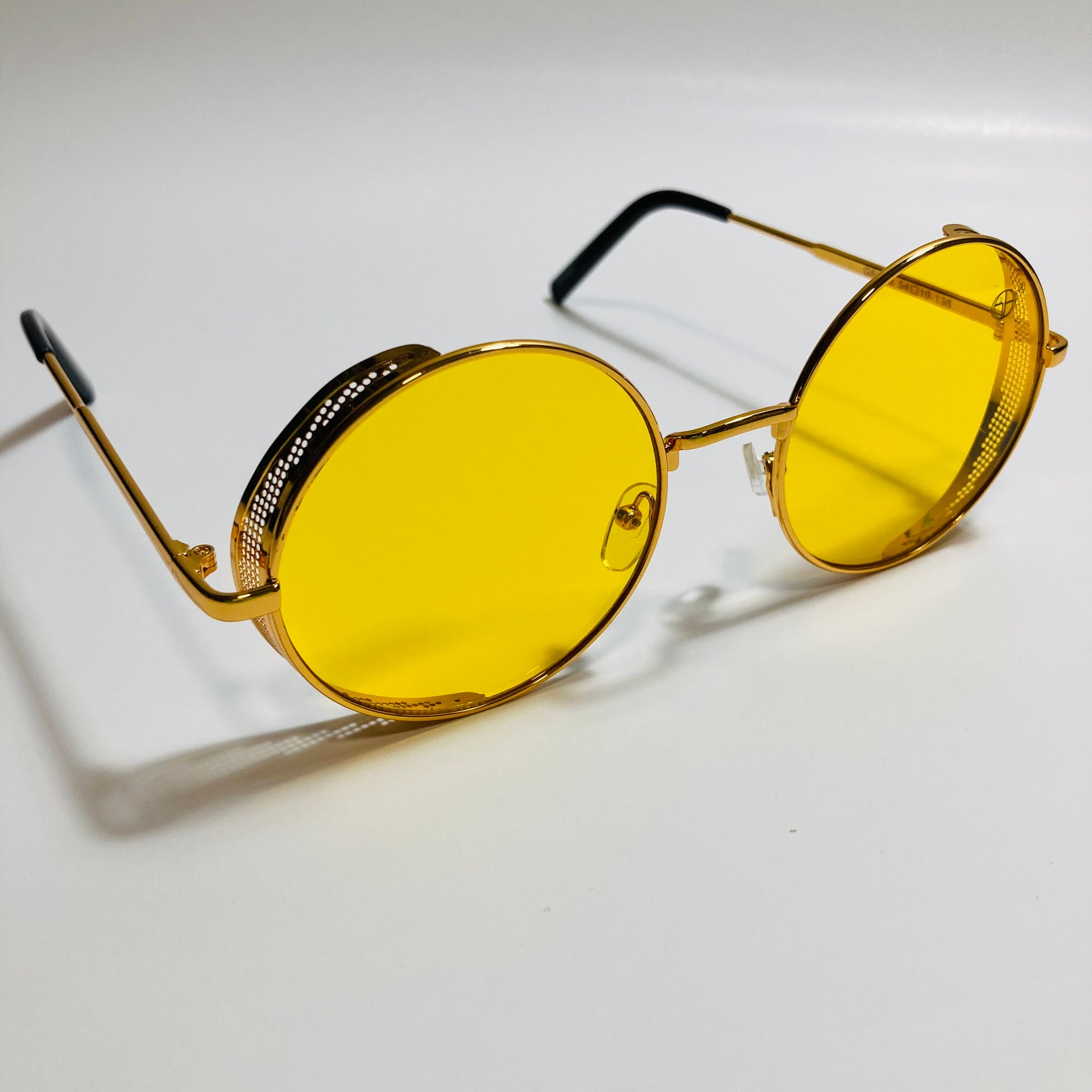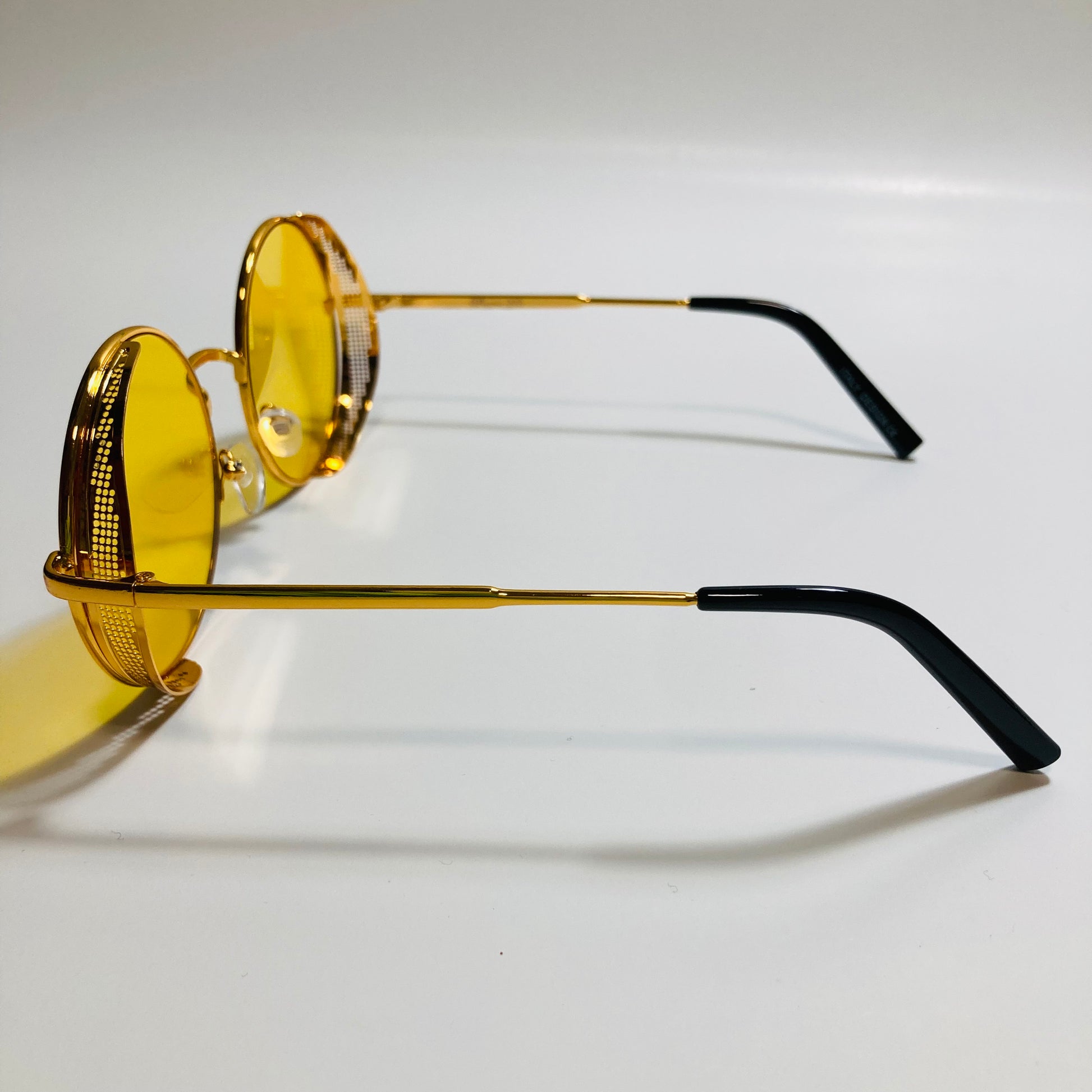 And around and around and around we go. The Dizzy capitalizes on the ever-popular circular sunglasses trend with a few key details. These sturdy metal sunglasses feature a metal frame with cut-out side shields. Available in four colors: gold/black, gold/yellow, white gold/green, and black/black.