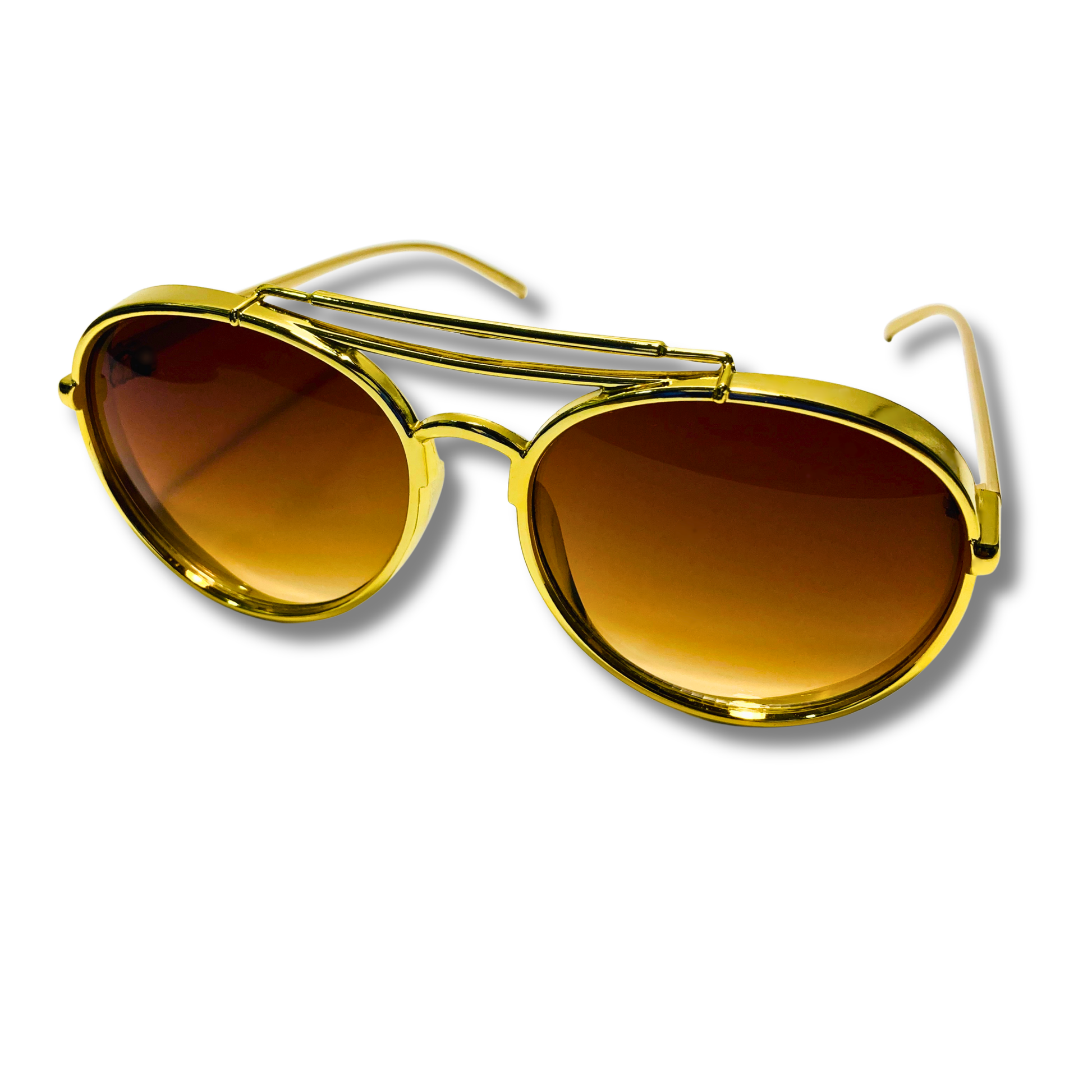 It ain't easy being the king. In fact it's so difficult you might pick up an opiate addiction and rely on an abhorrently unhealthy diet until an exceptionally troublesome bowel movement causes your heart to burst. Whether you've always dreamed of dying on the toilet, or just want to look like rock 'n' roll's most influential star, The Elvis sunglasses are for you. Available in three colors: gold, silver, and black.