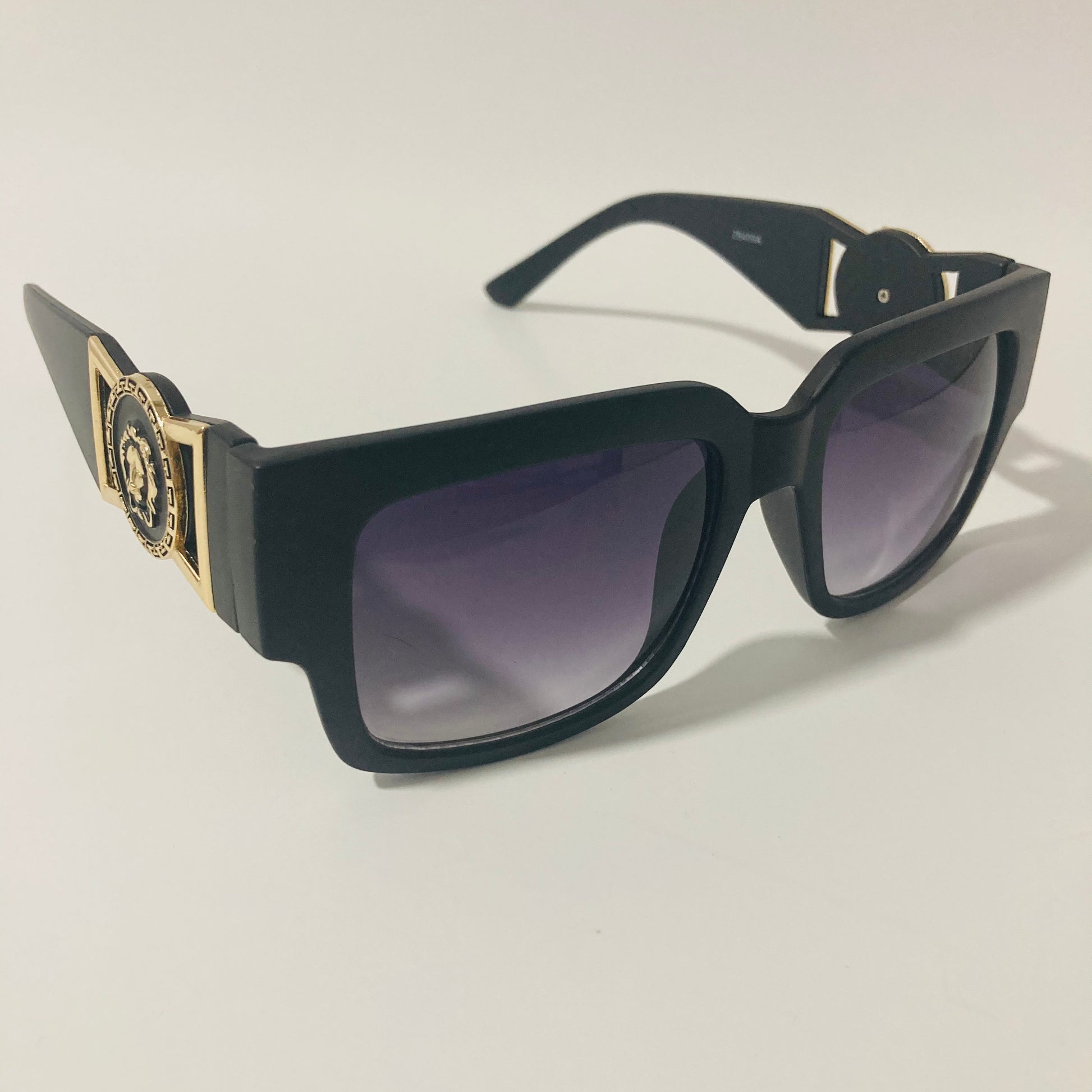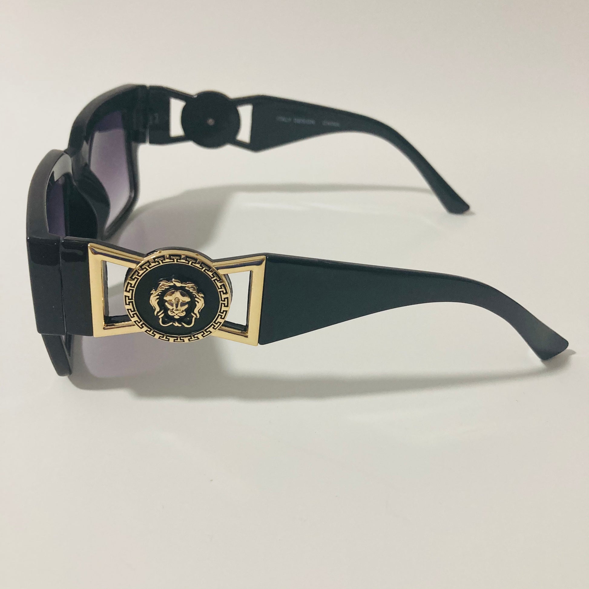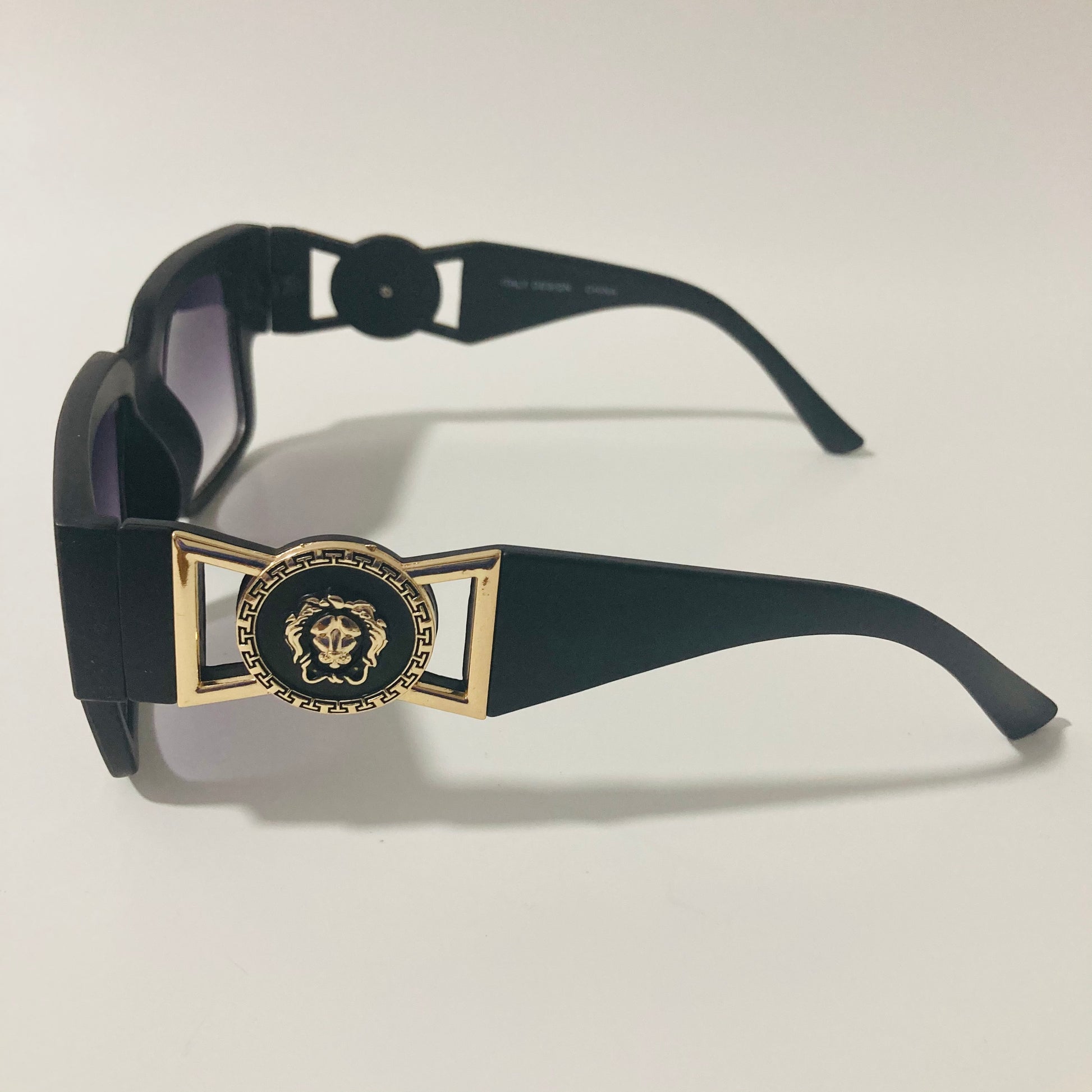 Do you want that Roman Emperor drip? Look no further than The Flavius. These gazelle inspired square sunglasses were designed in Italy and feature arms adored with lion medallions. The slightly oversized square shape beckons to the timeless profile of 80s b-boys wearing gazelles / cazals. Available in four colors: matte black, gloss black, clear, and tortoise.