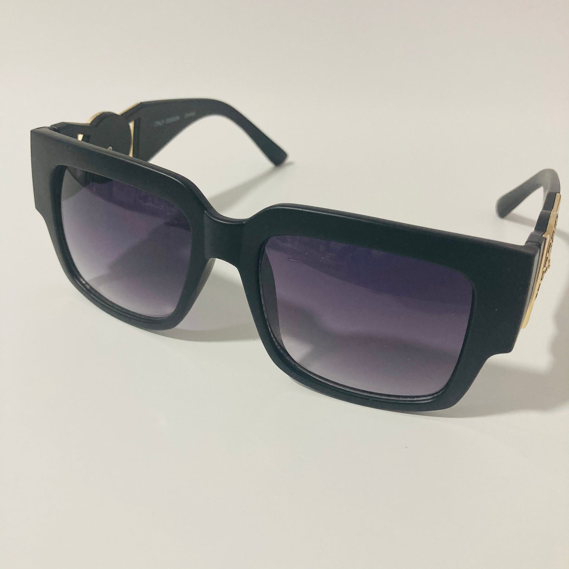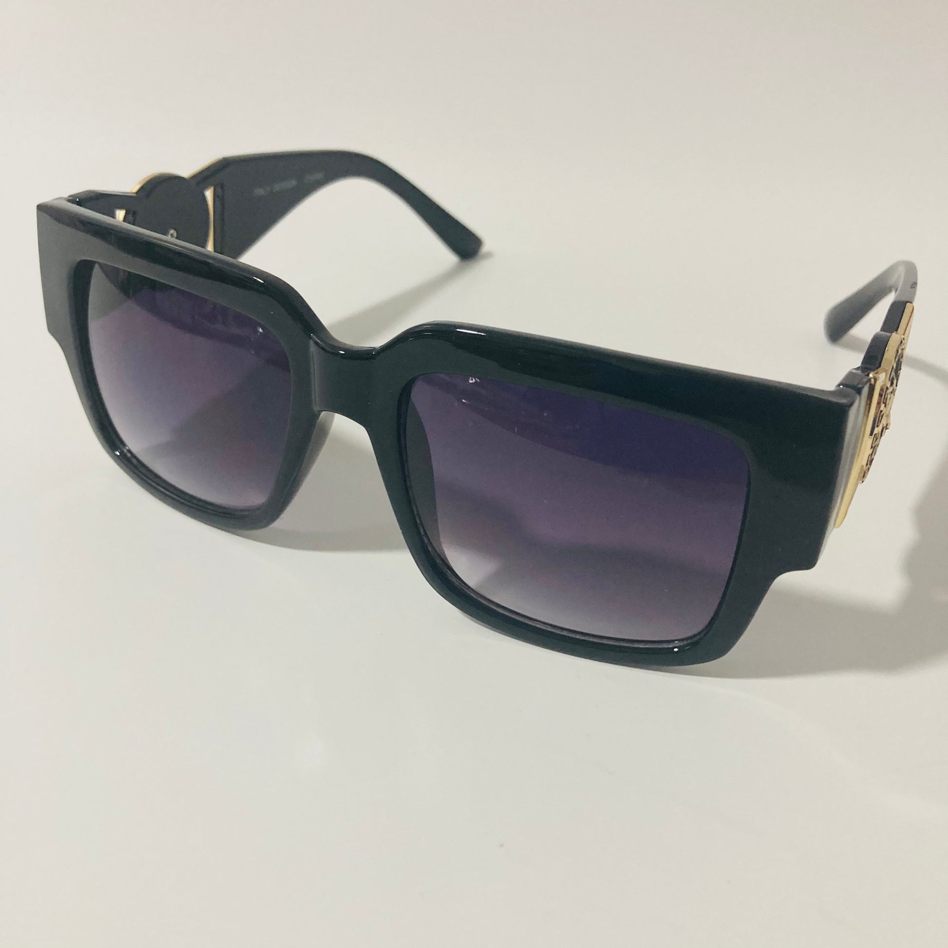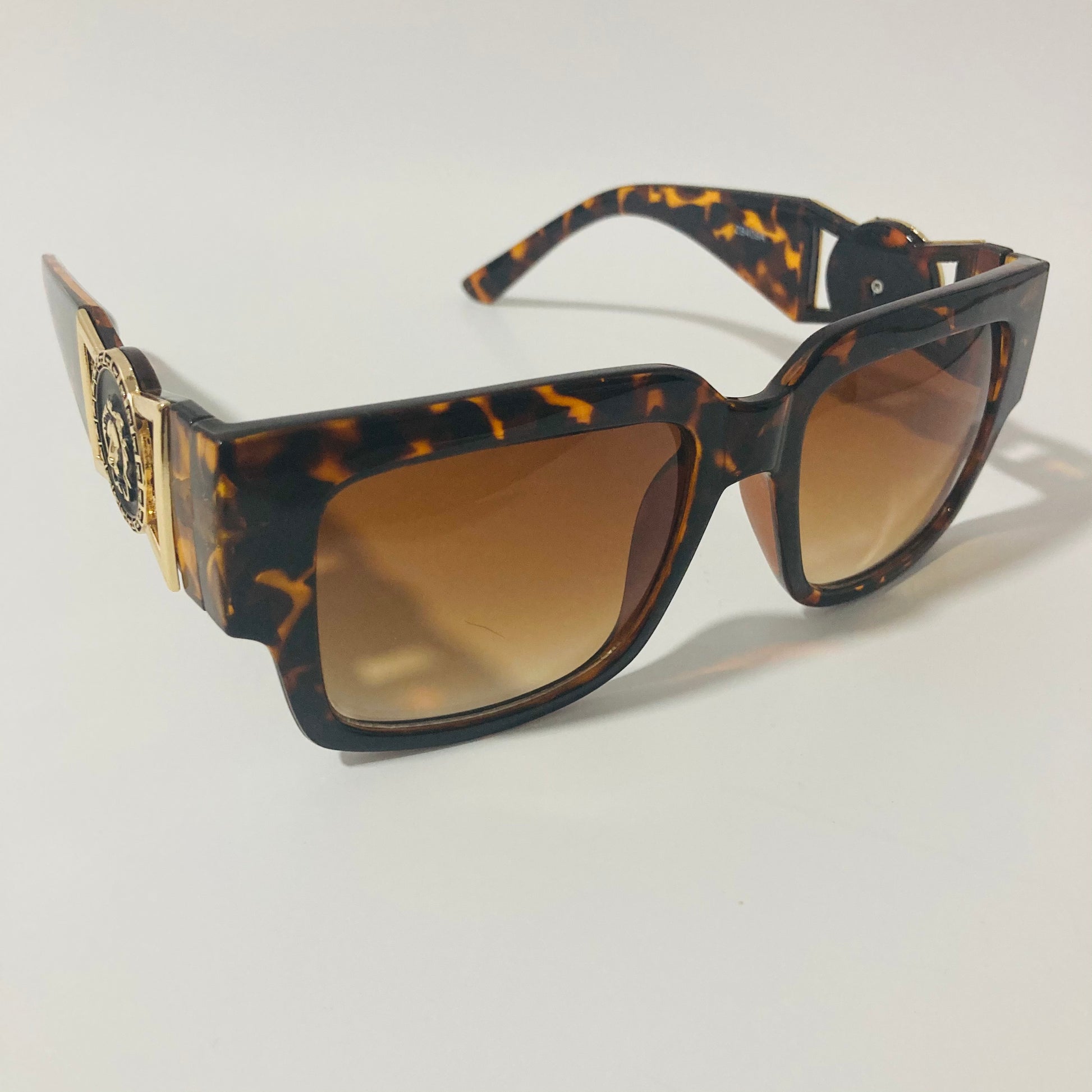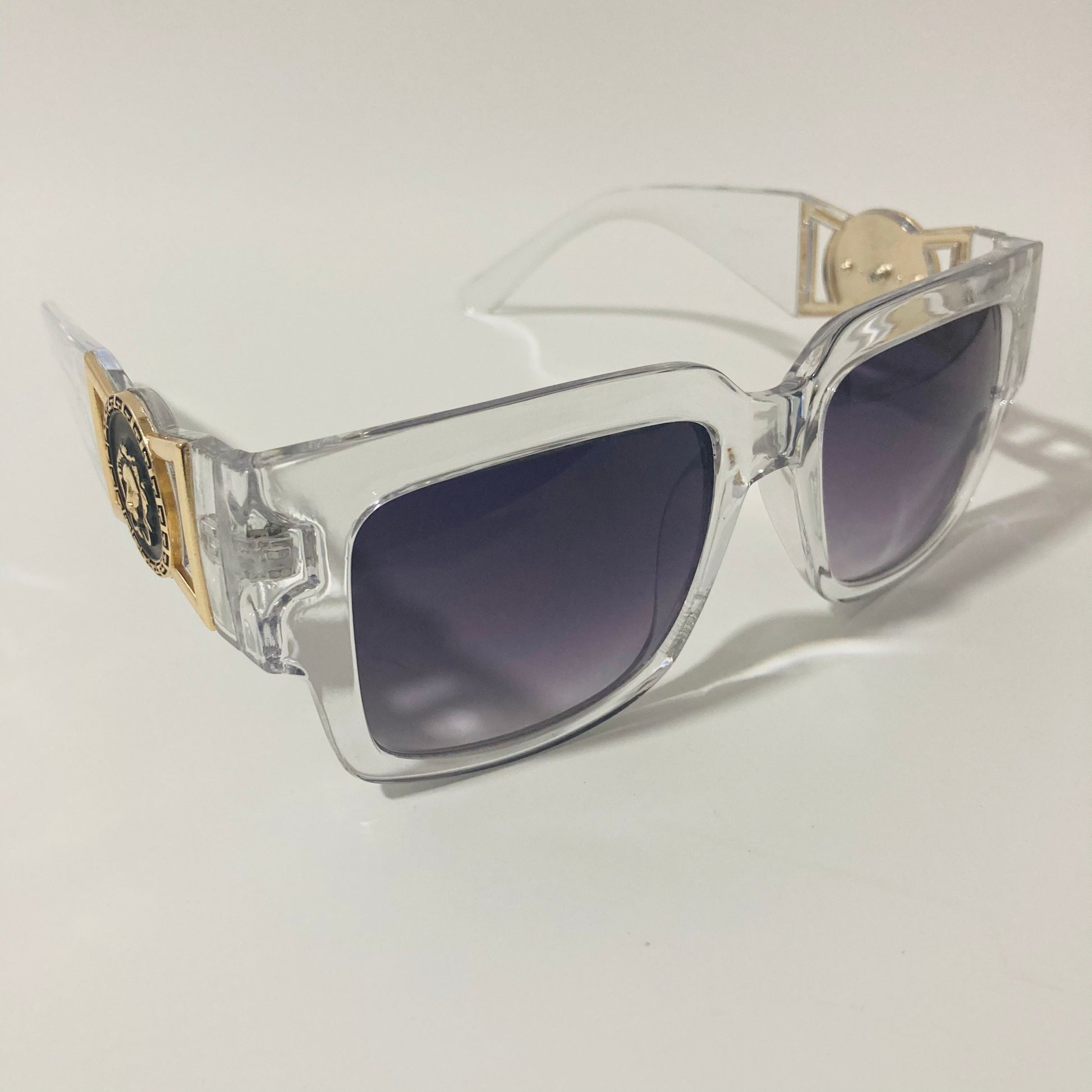 Do you want that Roman Emperor drip? Look no further than The Flavius. These gazelle inspired square sunglasses were designed in Italy and feature arms adored with lion medallions. The slightly oversized square shape beckons to the timeless profile of 80s b-boys wearing gazelles / cazals. Available in four colors: matte black, gloss black, clear, and tortoise.