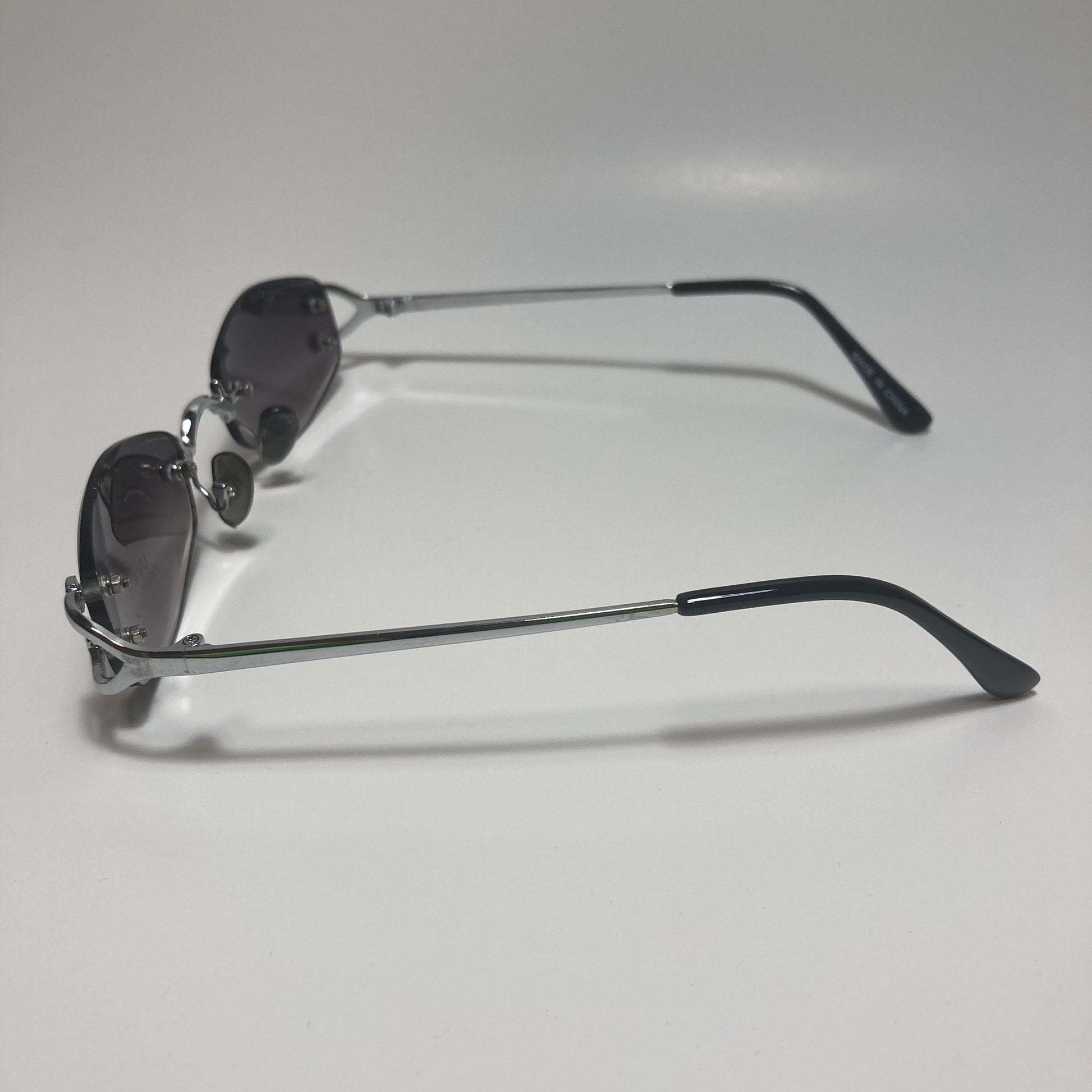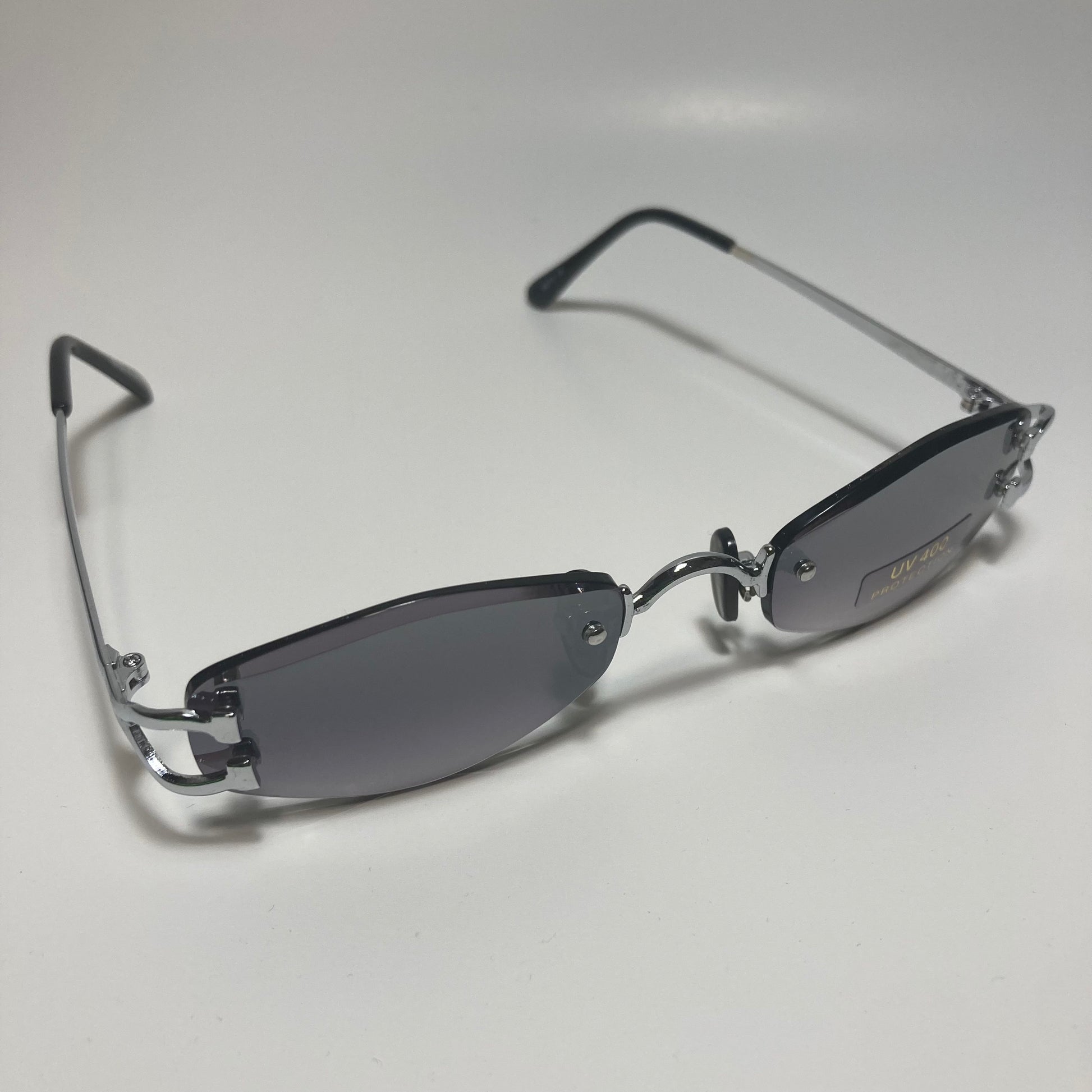 The LuBaby is a special representation of art-deco modernism. These ultra slim profile rimless sunglasses feature a lightweight metal frame, rimless beveled lenses, and two prong accents around the temple. Available in three colors: gold/brown, silver/black, and silver/pink.