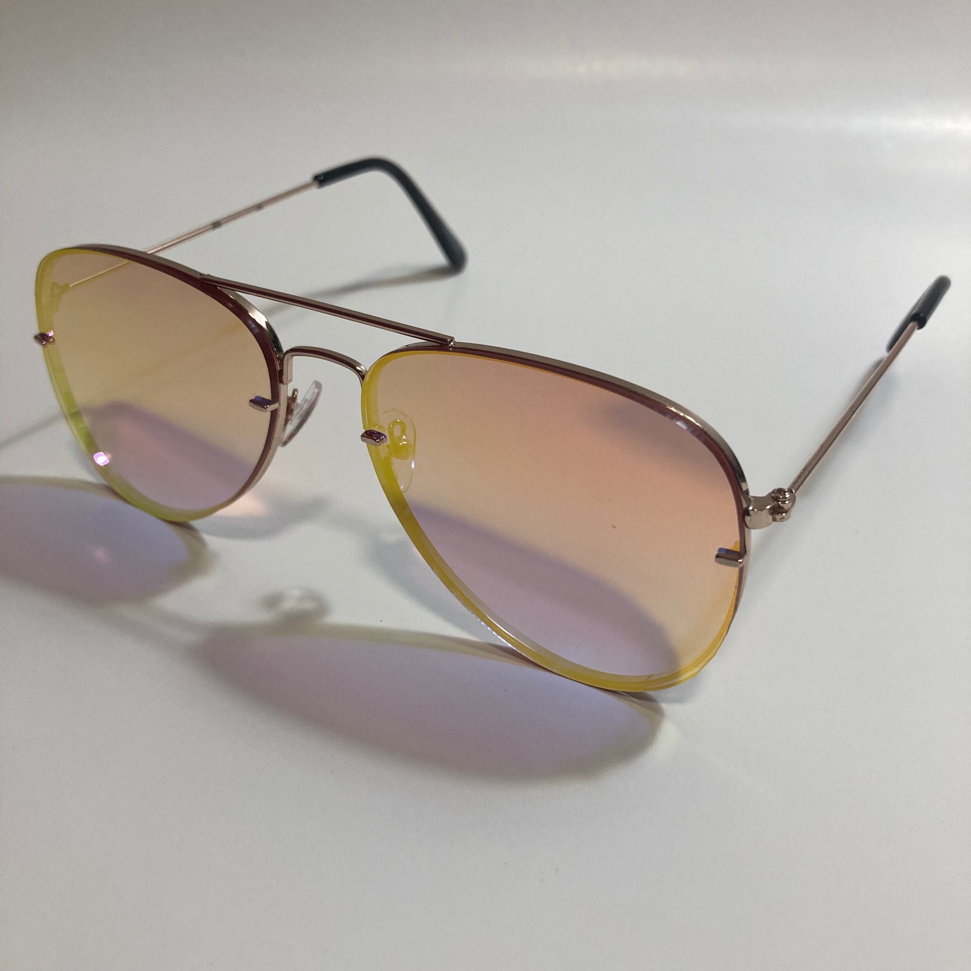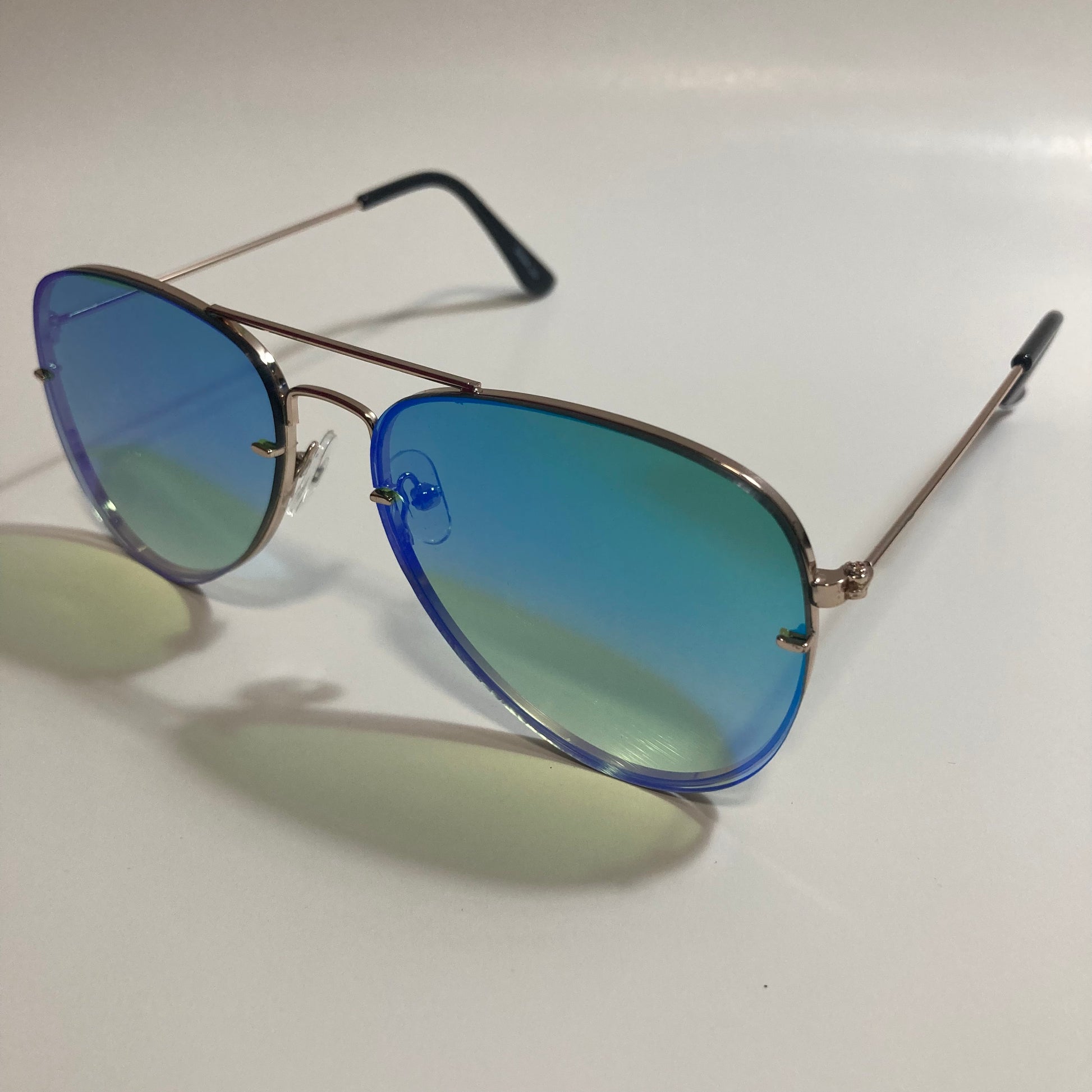 Cacawwwww! Or maybe like an eagle screech or something. The Flybird is a versatile pair of aviator sunglasses featuring colorful mirrored lenses. The lightweight metal frame holds the sturdy polycarbonate lenses in place. Just imagine these sunglasses reflecting a sunset on the beach and you'll understand their magic. Available in five colors: brown, orange, gray, blue, and green.