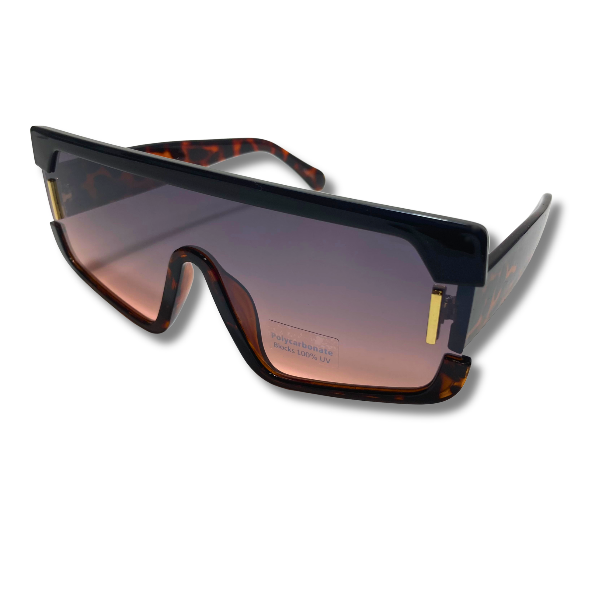 The Reckless is an affront to all boring sunglasses. These oversized sunglasses feature gold temple accents, gradient lenses, and a square single-lens silhouette. Available in four colors; black/pink, black, brown/white, and brown/black.