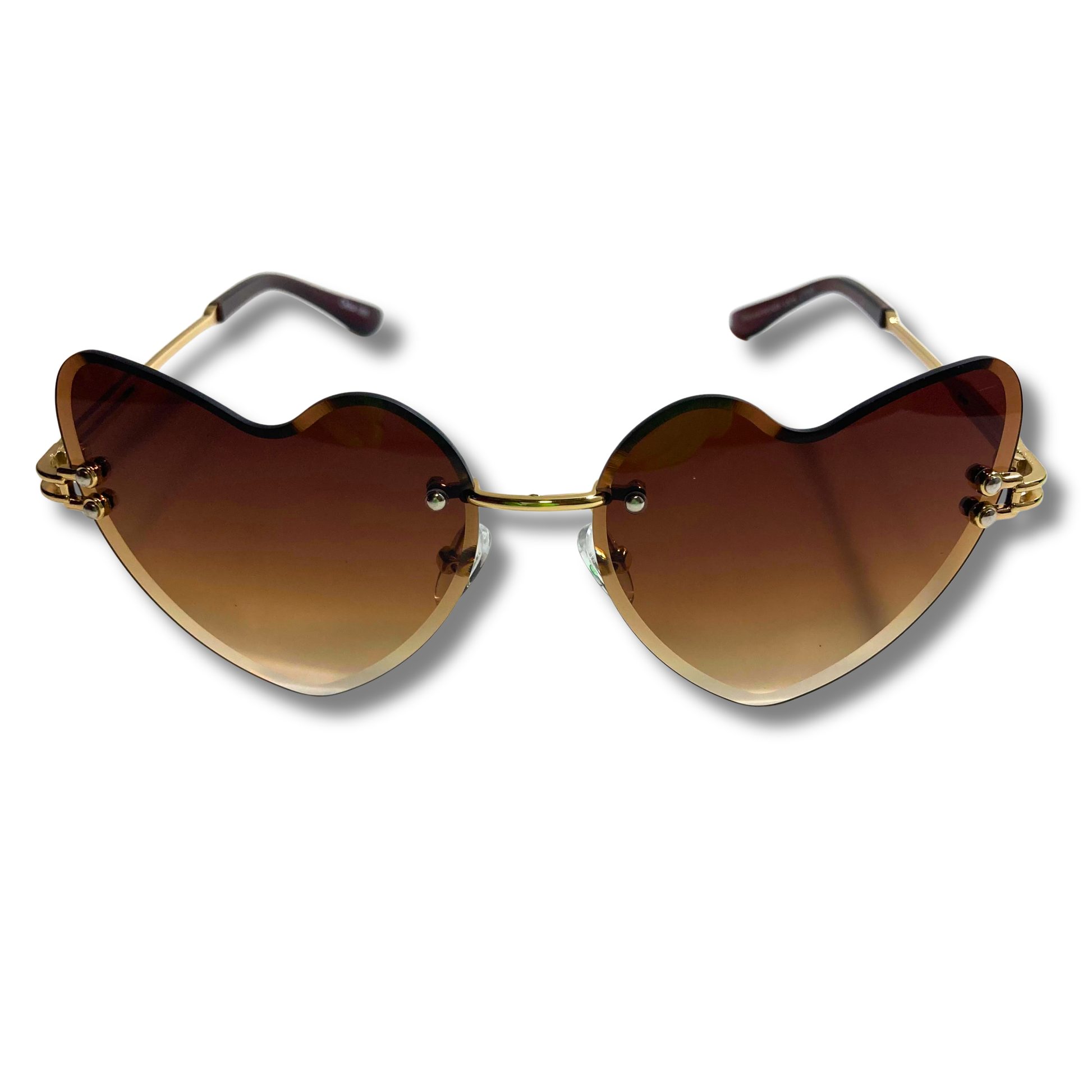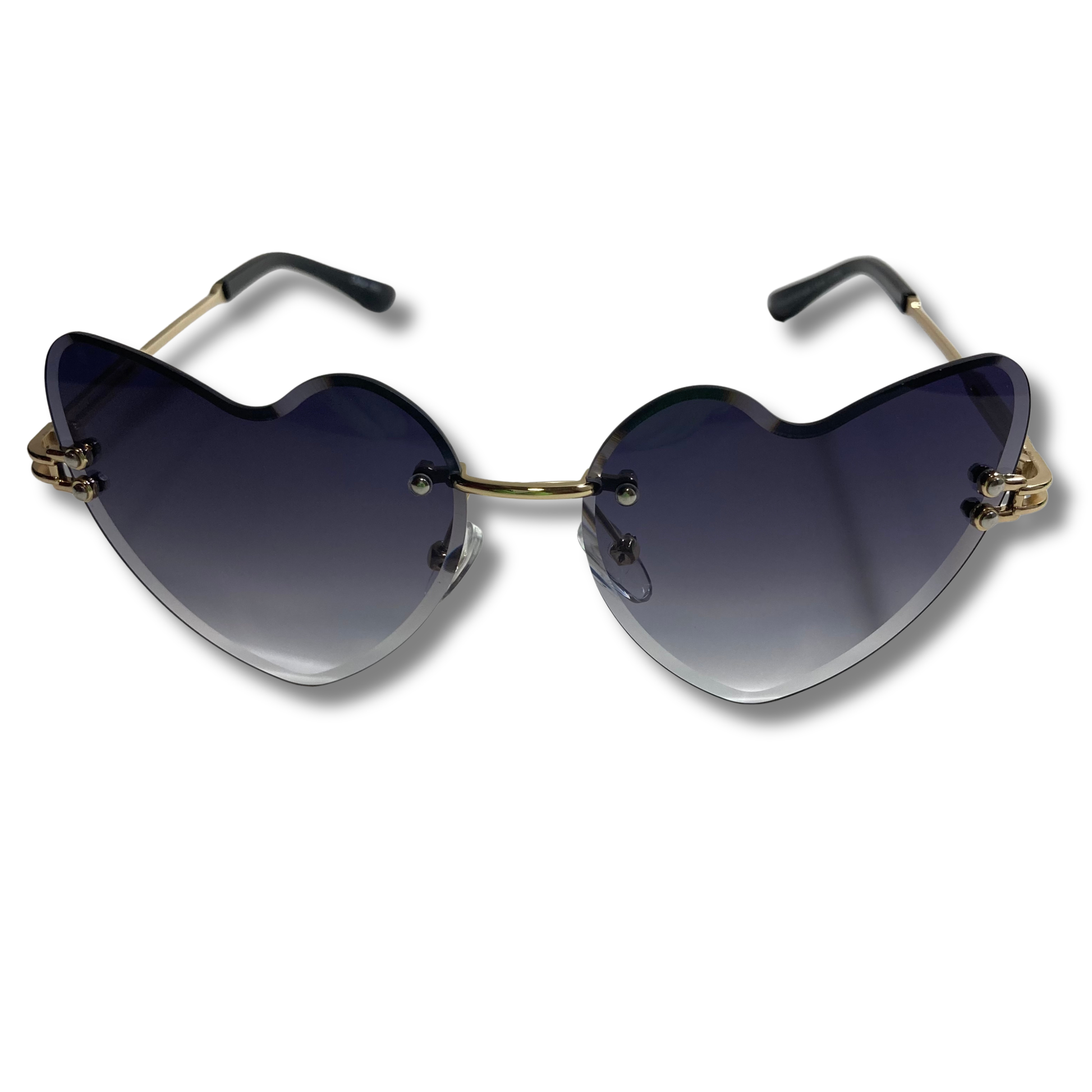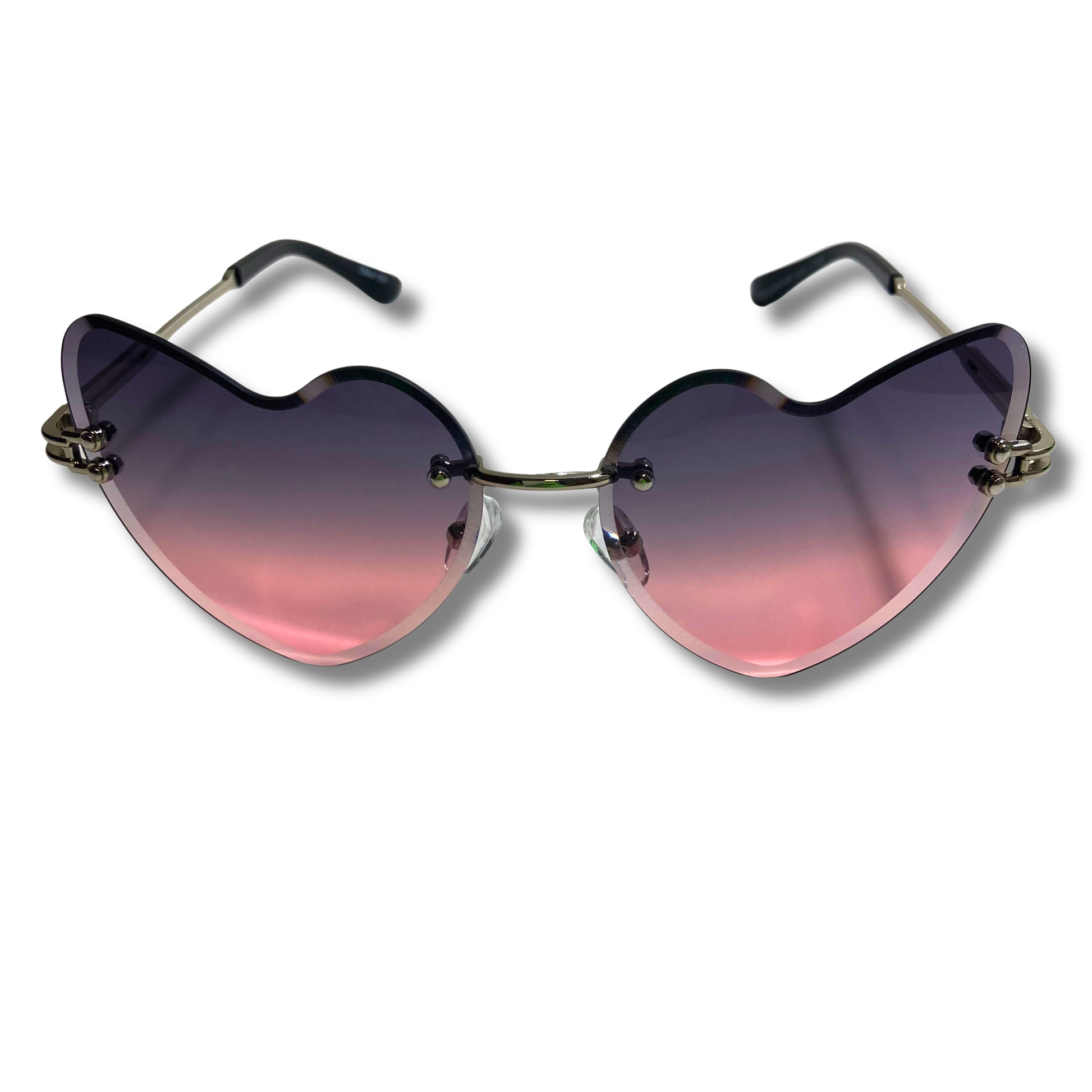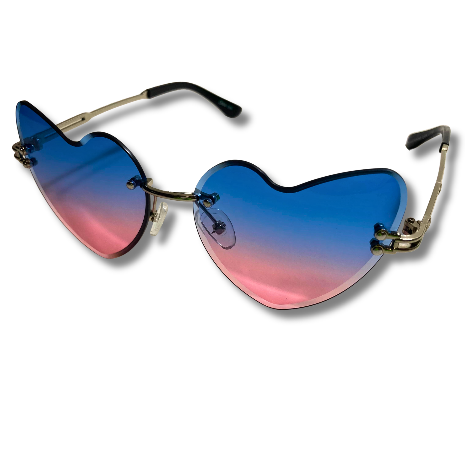 The Amour is the queen bee of heart-shaped sunglasses. These rimless sunglasses feature a bevelled lens and sturdy metal frame complete with barrel hinges. Available in five colors: silver/black & pink, silver/pink & blue, gold/green fade, gold/black fade, and gold/brown fade.