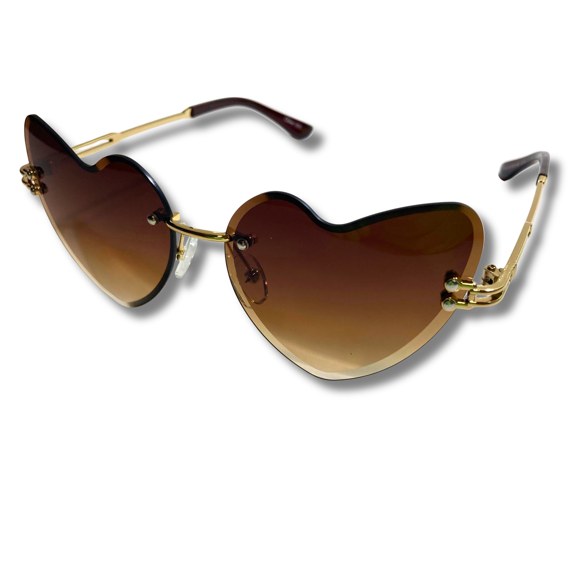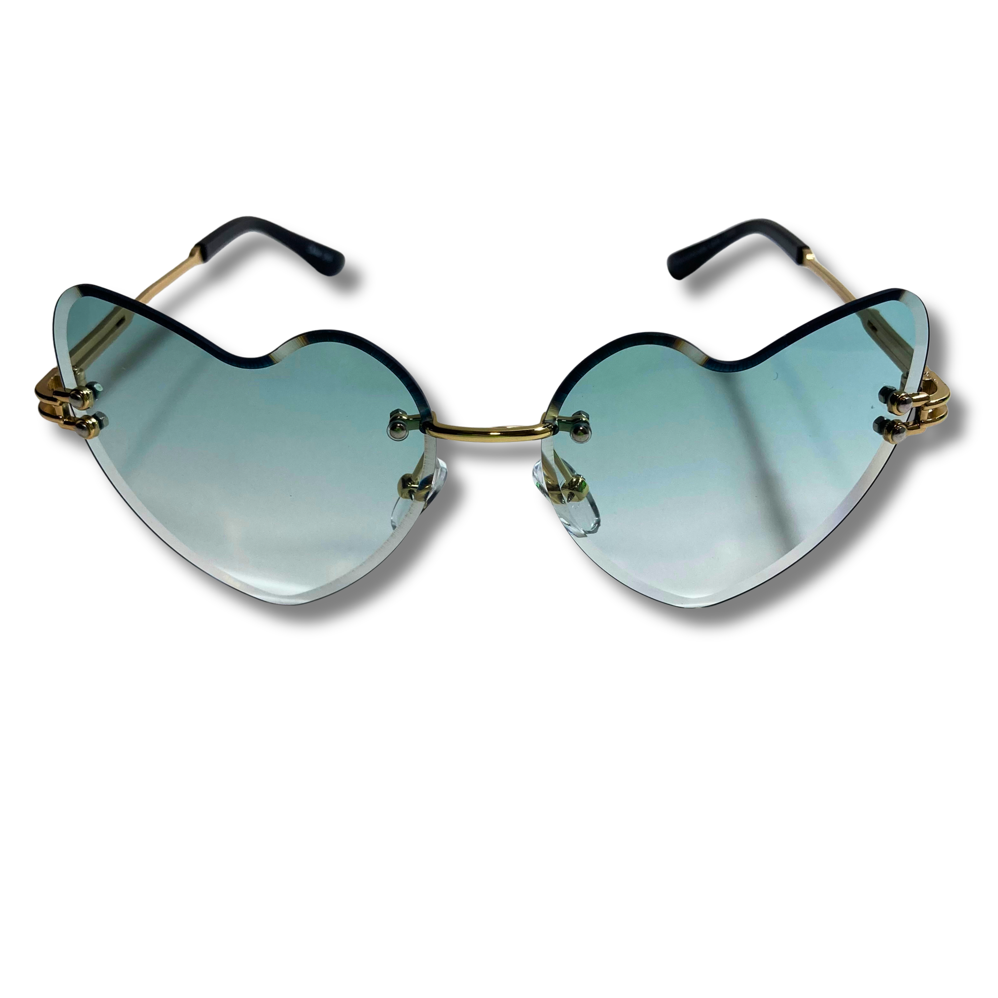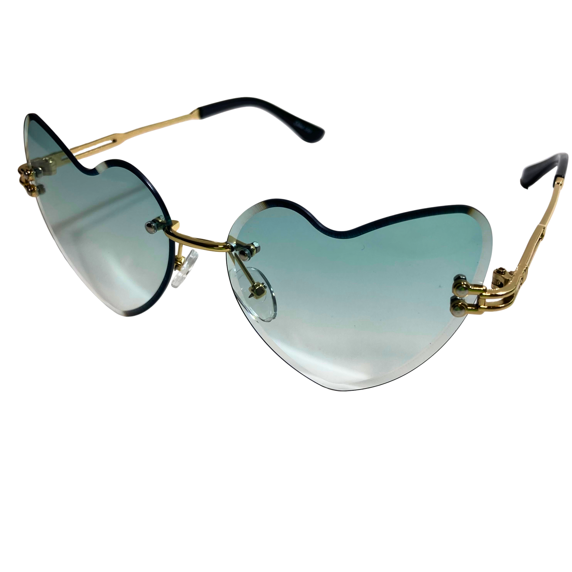 The Amour is the queen bee of heart-shaped sunglasses. These rimless sunglasses feature a bevelled lens and sturdy metal frame complete with barrel hinges. Available in five colors: silver/black & pink, silver/pink & blue, gold/green fade, gold/black fade, and gold/brown fade.