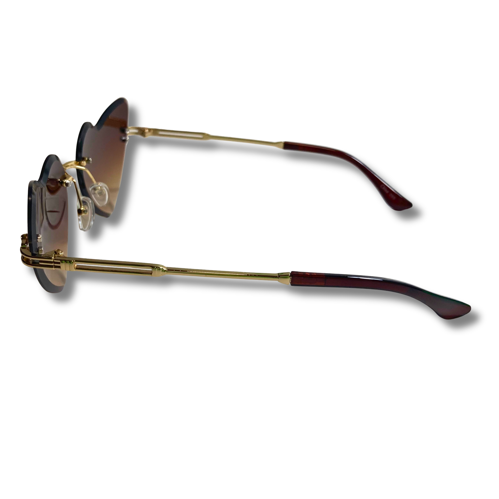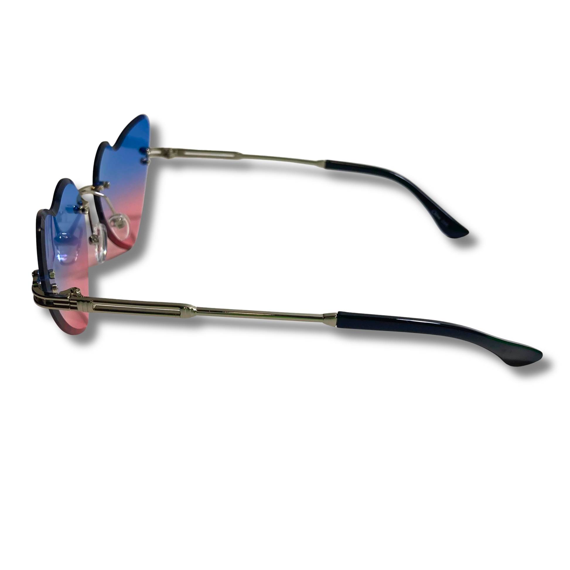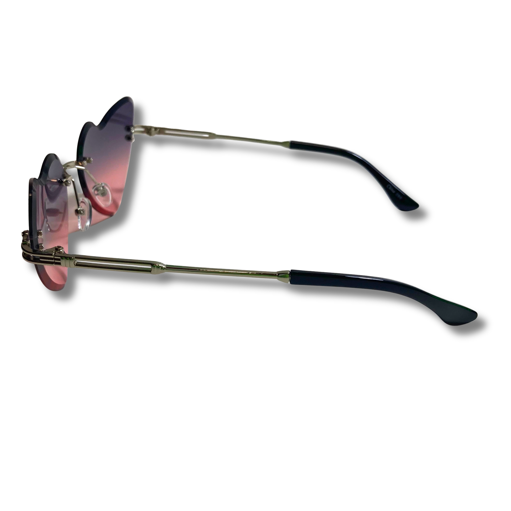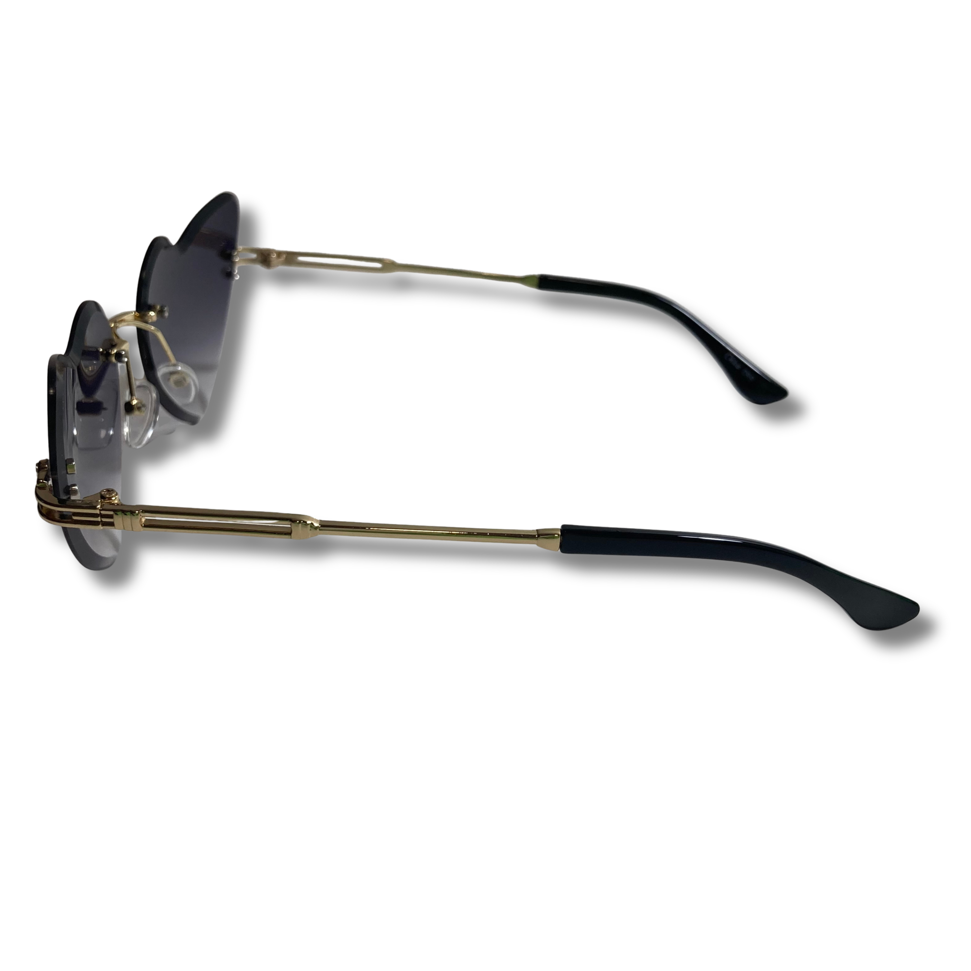 The Amour is the queen bee of heart-shaped sunglasses. These rimless sunglasses feature a bevelled lens and sturdy metal frame complete with barrel hinges. Available in five colors: silver/black & pink, silver/pink & blue, gold/green fade, gold/black fade, and gold/brown fade.