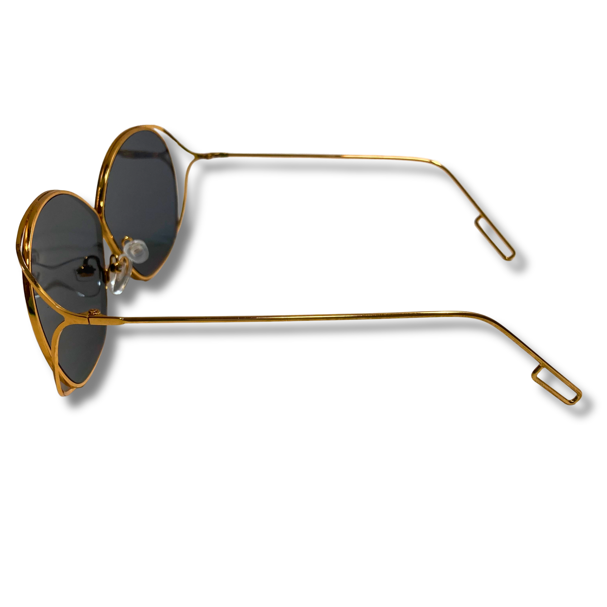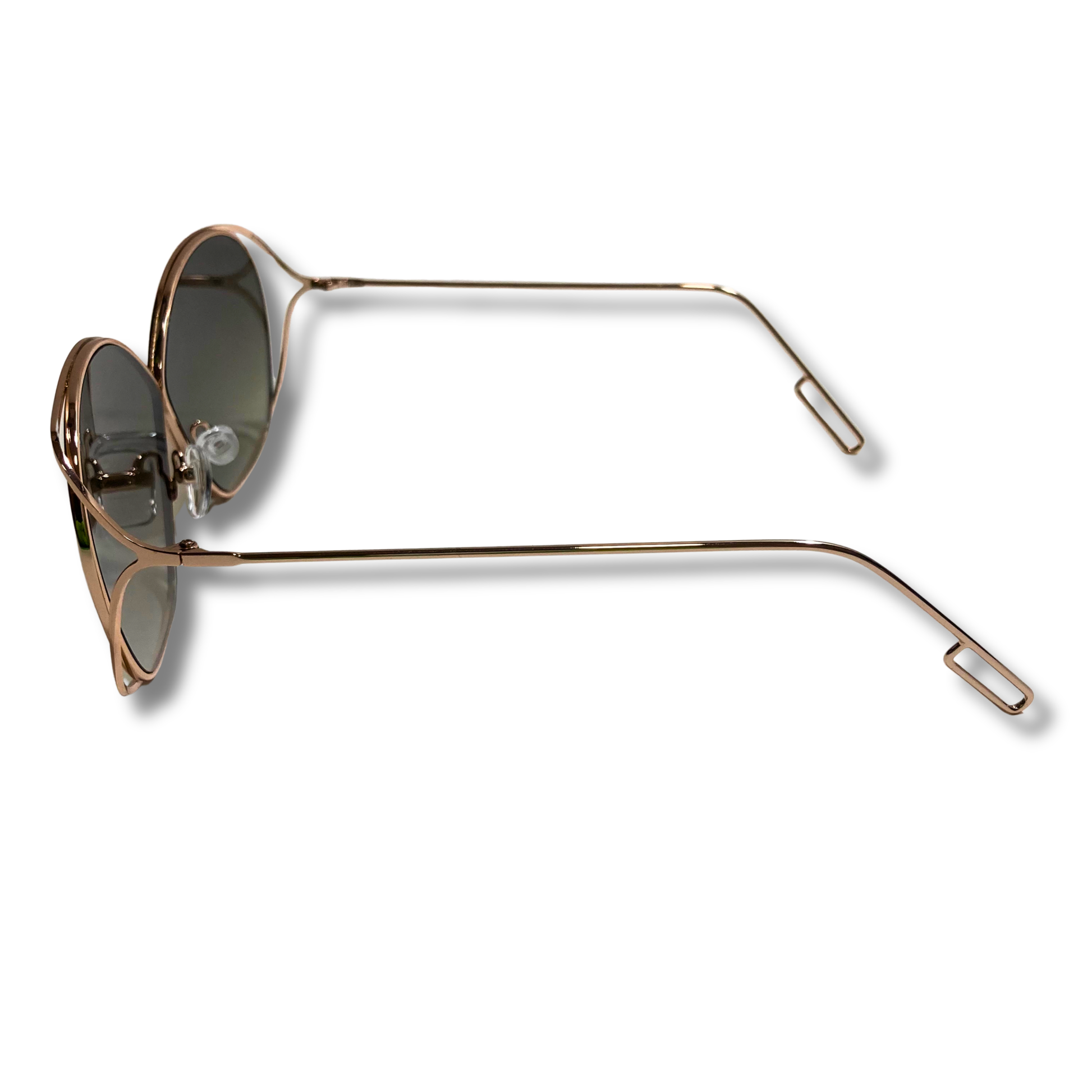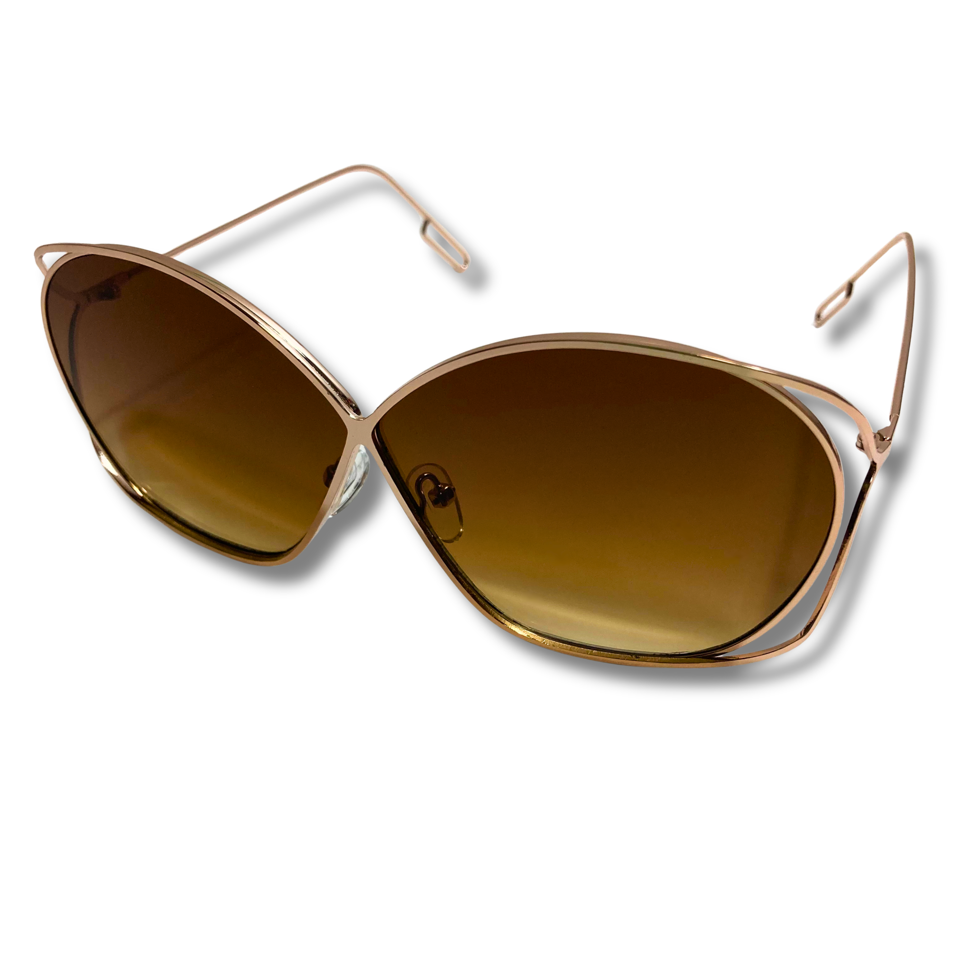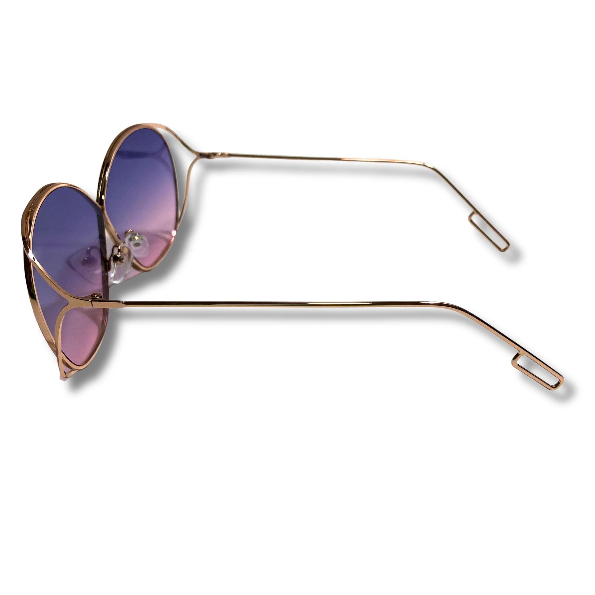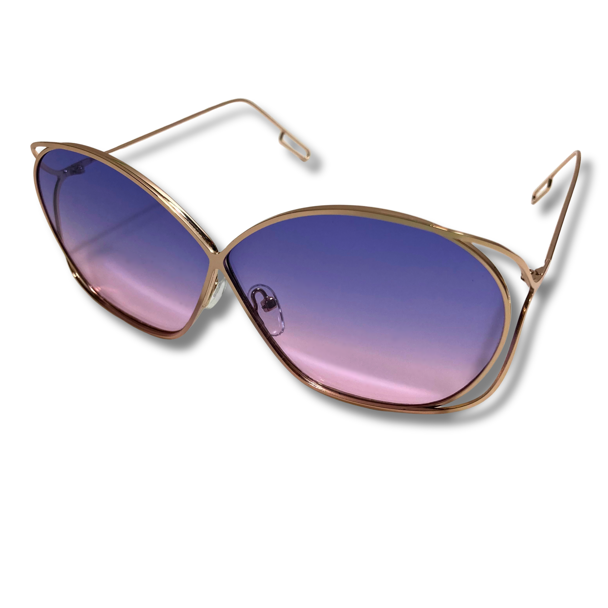 Twist it all up into a beautiful little bow. These sunglasses take their inspiration from a tied bow. These high concept shades feature a heavyweight metal frame, slightly oversized silhouette, and accent cutouts around the rims of the lenses. These shades are perfect for the person that prefers to deviate from the crowd. Available in five colors: Silver/Black Fade, Gold/Green Fade, Gold/Pink & Purple Fade, Gold/Brown Fade, and Gold/Black.