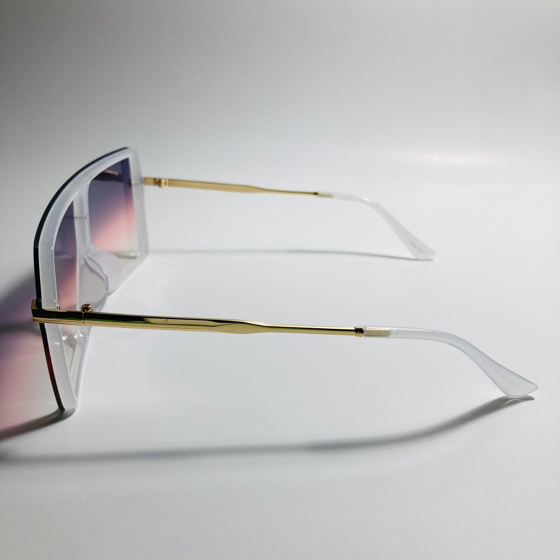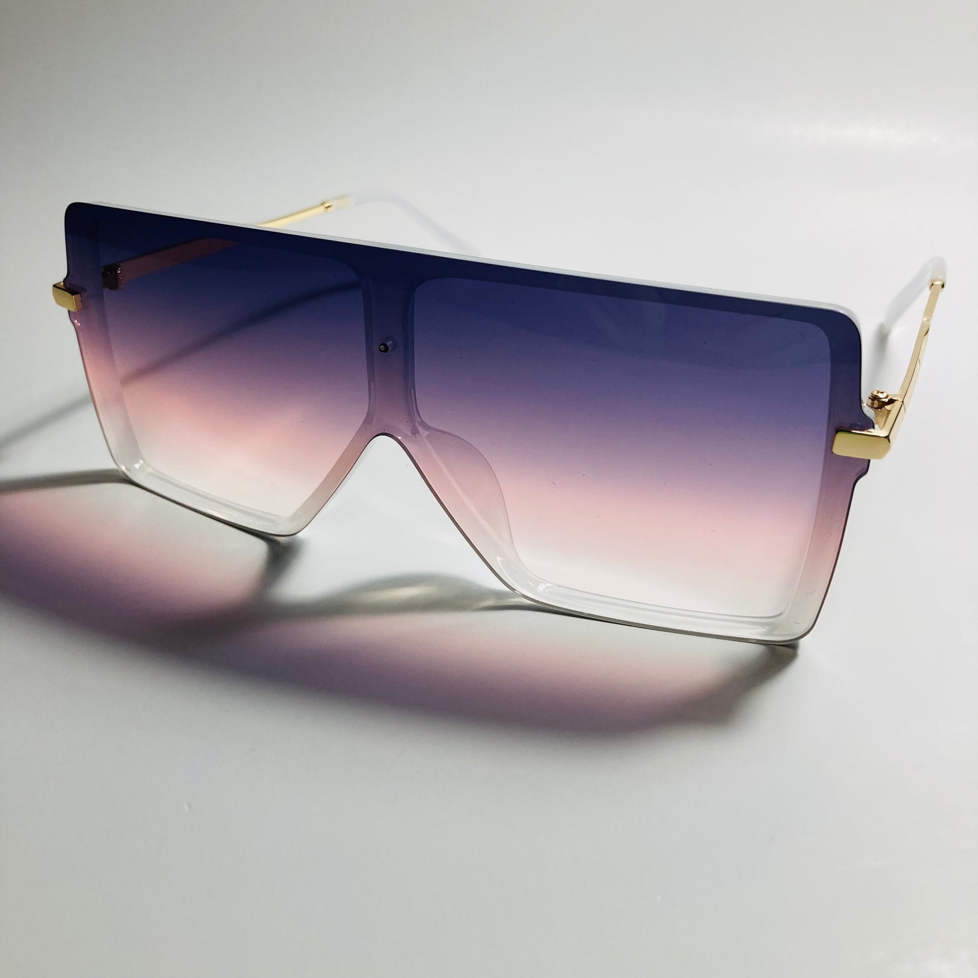 The Fabri is fabulous and it knows it. These oversized sunglasses feature a minimalist square silhouette and sleek single lens design. With delicate gold arms and lenses featuring a colorful fade, these sunglasses are the ideal pair for having some fun in the sun. Available in four colors: White/Purple & Pink Fade, Green/Blue & Yellow Fade, Brown/Brown Fade, and Black/Black Fade.