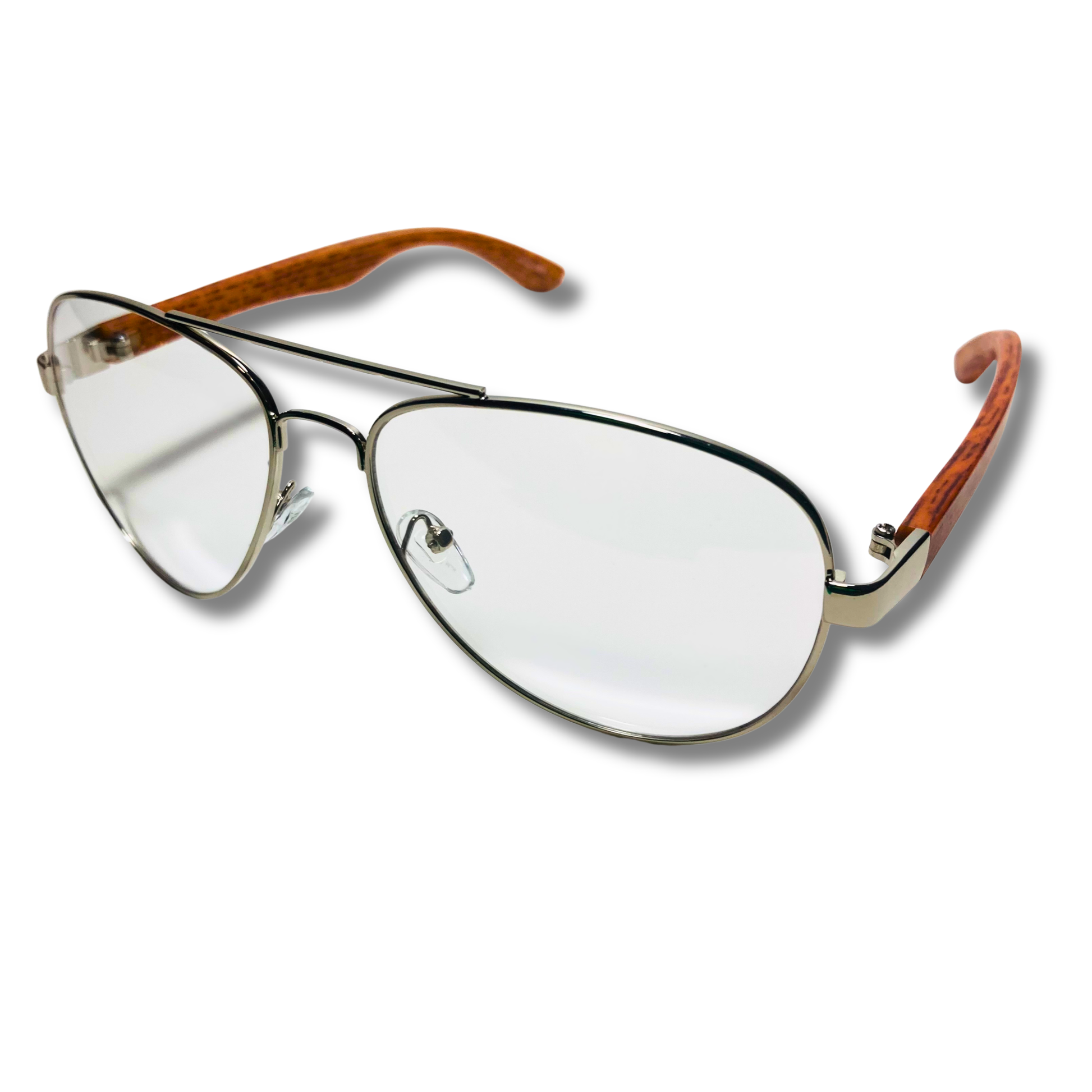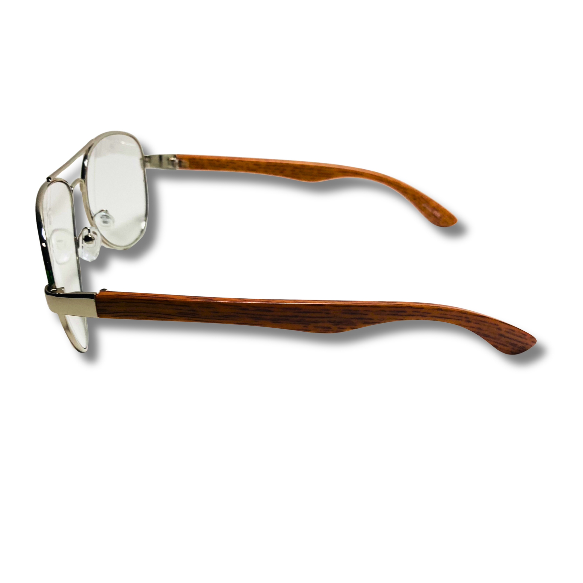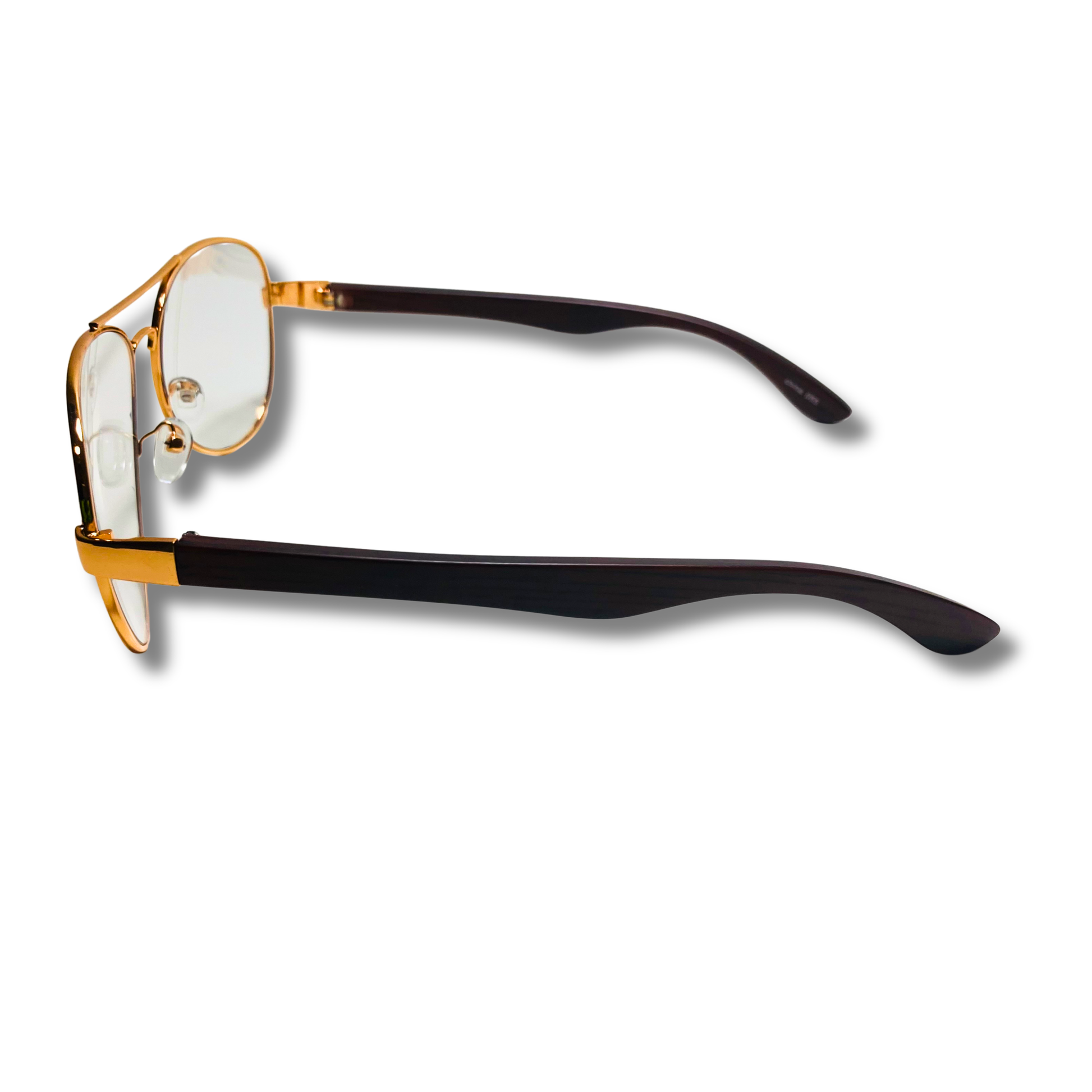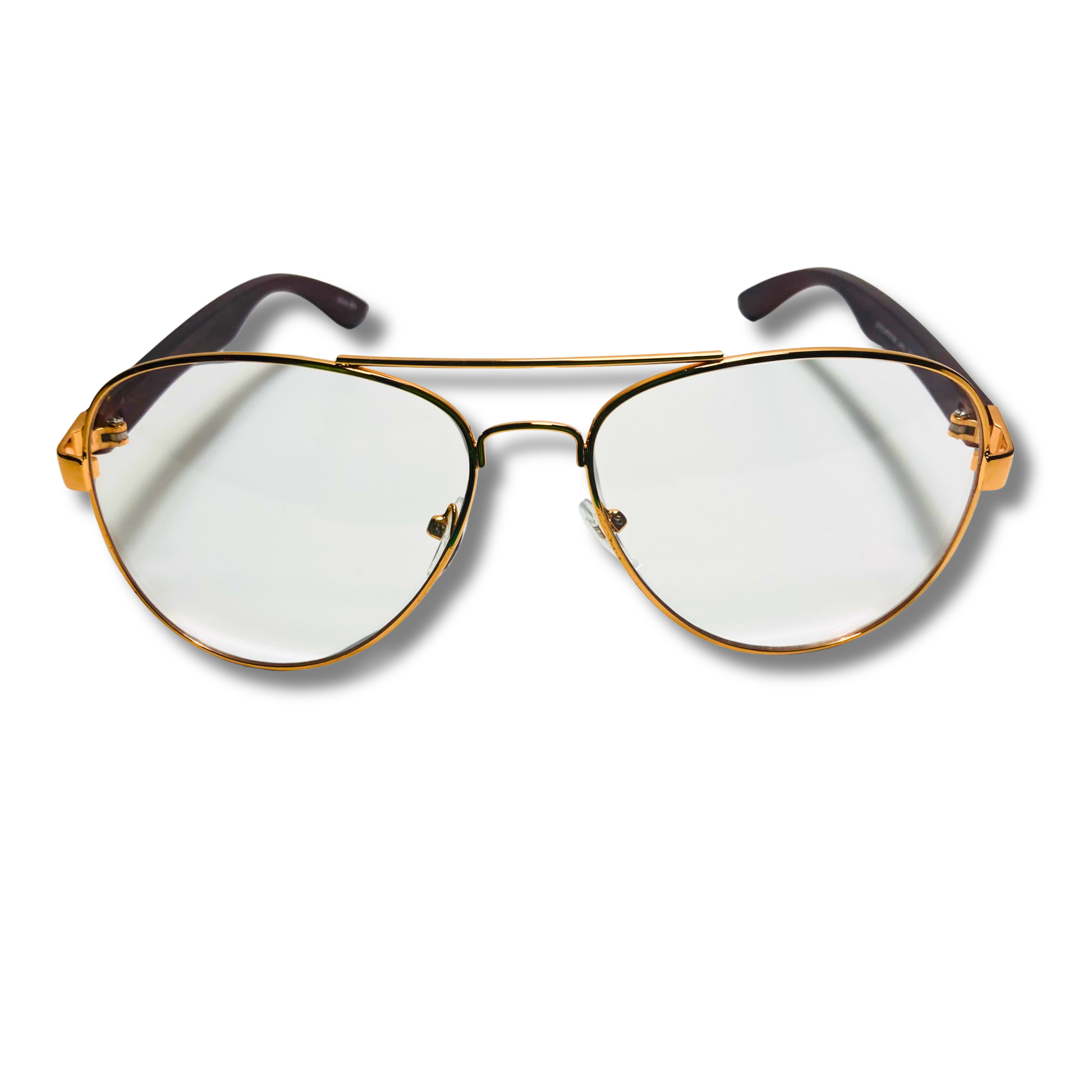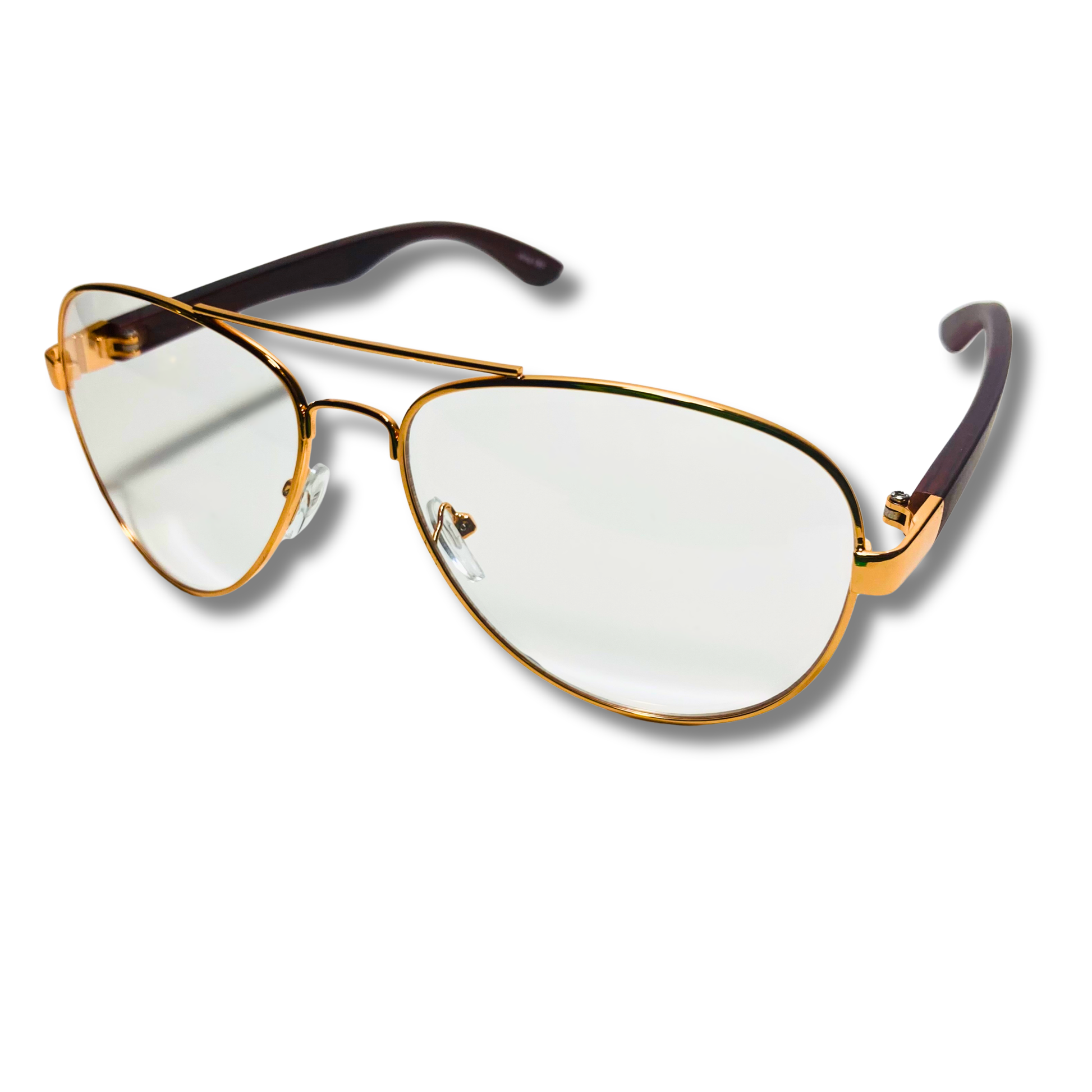 Get ready to rock with The Ned glasses! These retro Dahmer glasses feature aviator styling and faux-wood arms for a one-of-a-kind look. Choose from gold, silver, or black for a stylish addition to any outfit. Perfect for those who dare to be different. Bold. Edgy. Unique. Embrace your inner rebel with The Ned glasses. Push the boundaries of fashion with The Ned.