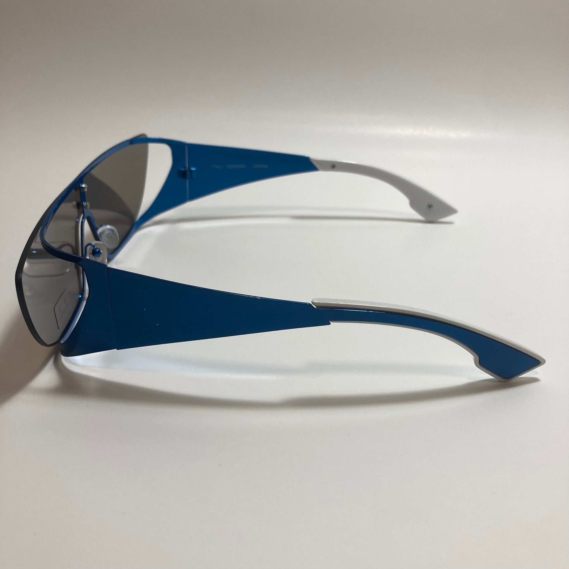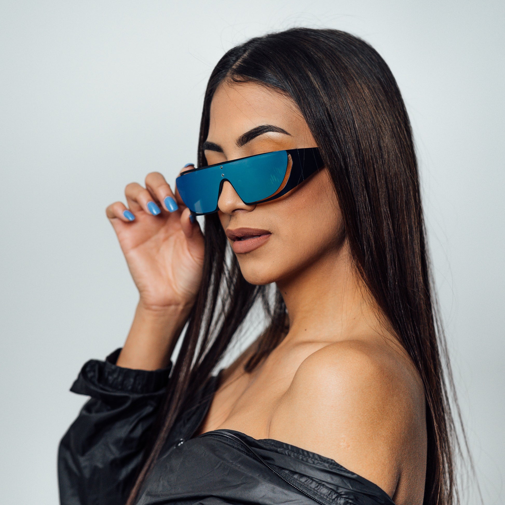 Let me tell you, finding the wormhole that transported us to the future, where we designed these sunglasses, was no easy feat. The Neon features a cut-out metal frame, partially-rimmed polycarbonate lenses, and a low profile futuristic silhouette. Available in six colors: black/mirrored yellow, gold/black, gold/mirrored green, purple/mirrored green, gray/black, and blue/mirrored blue.