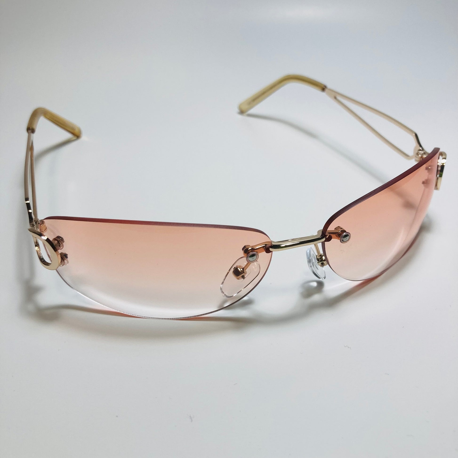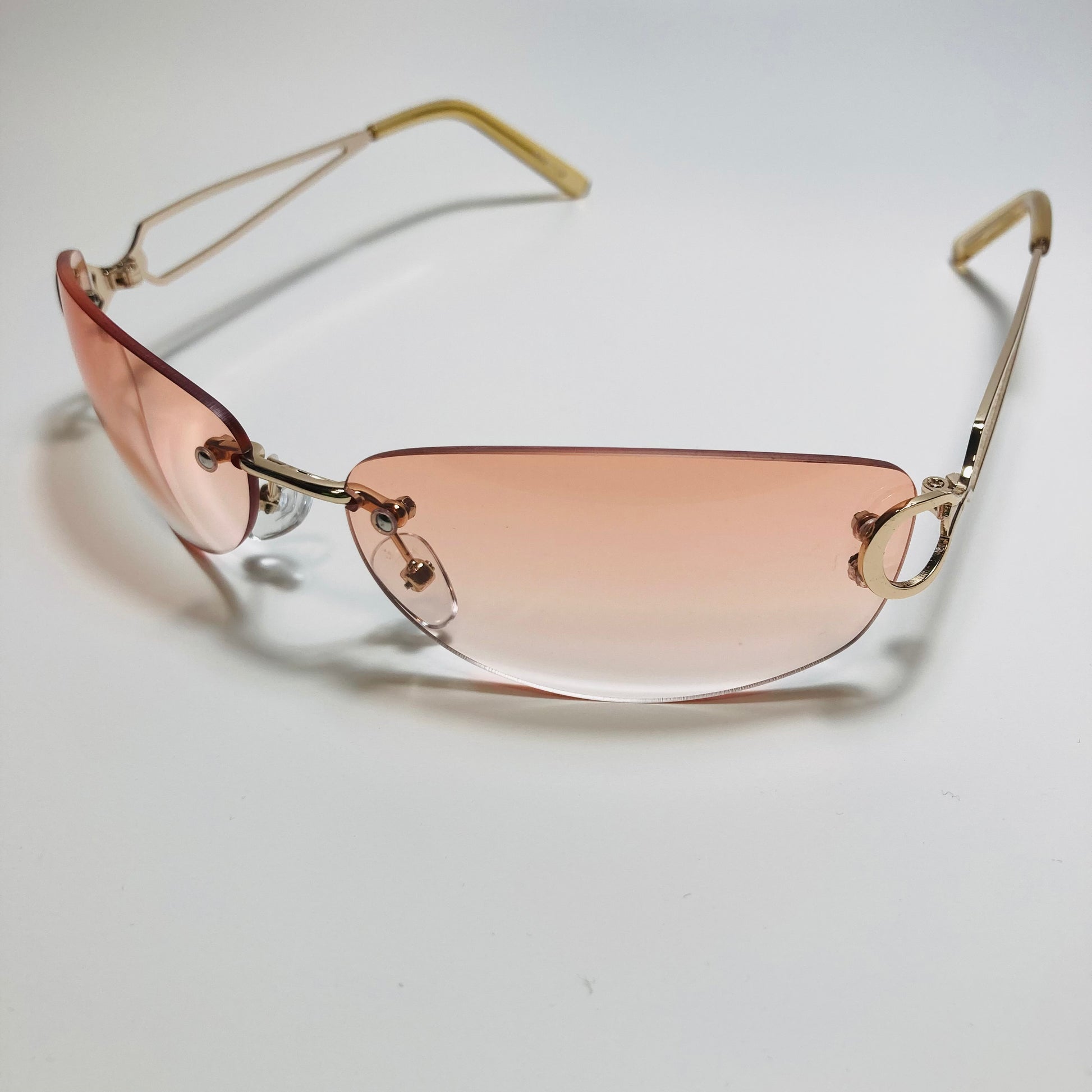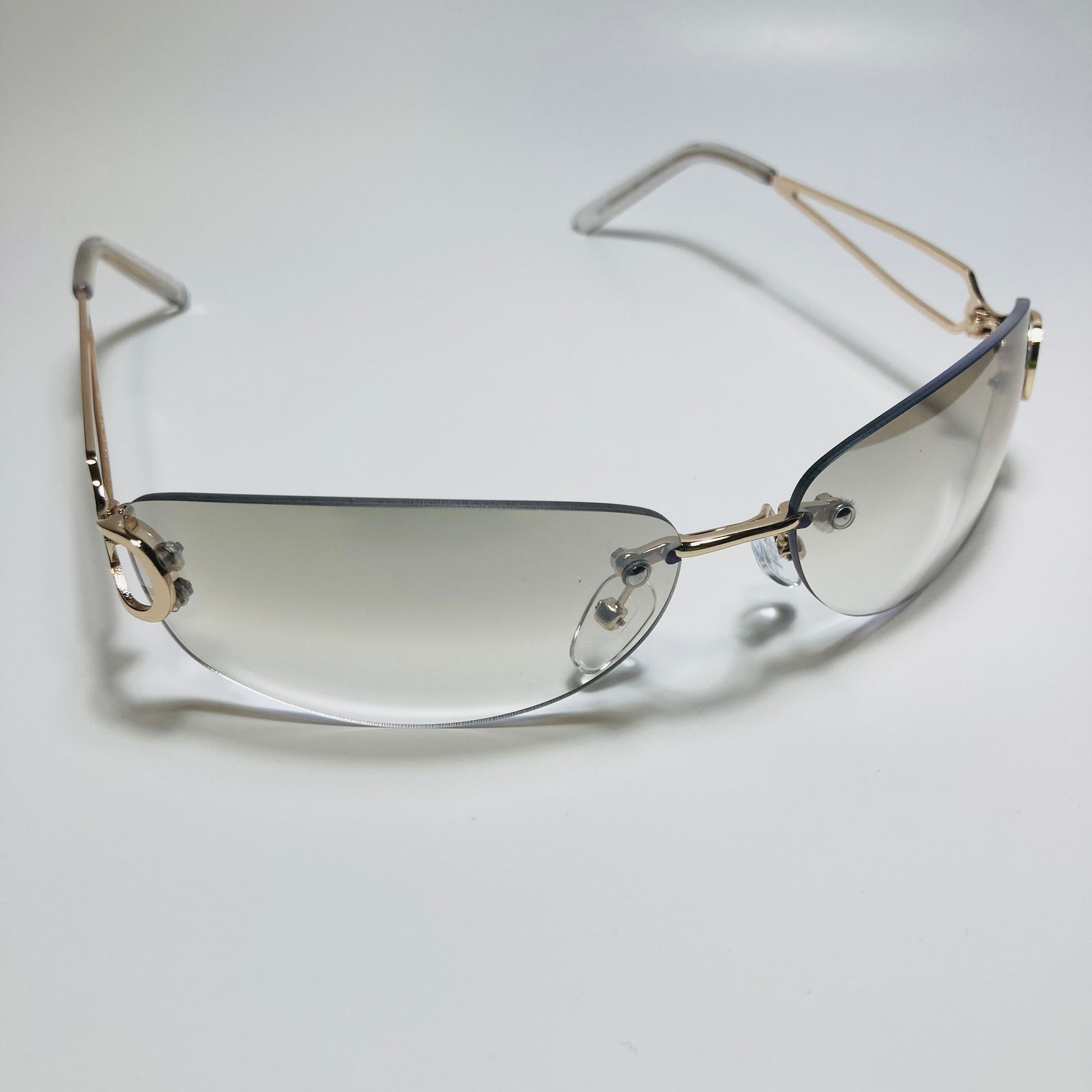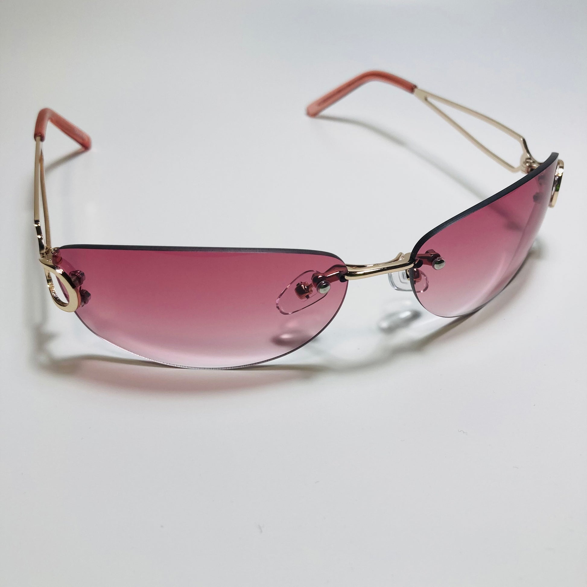 Introducing The Reed: the ultimate "throwback" accessory! These rimless, wrap, Y2K sunglasses feature a metal frame and retro styling. Available in five bold colors. Whether you're hitting the beach or strolling through the city, The Reed will add a touch of nostalgia and style to any outfit. Available in: Gold/Black, Gold/Blue, Gold/Pink, Gold/Purple, and Gold/Gray.
