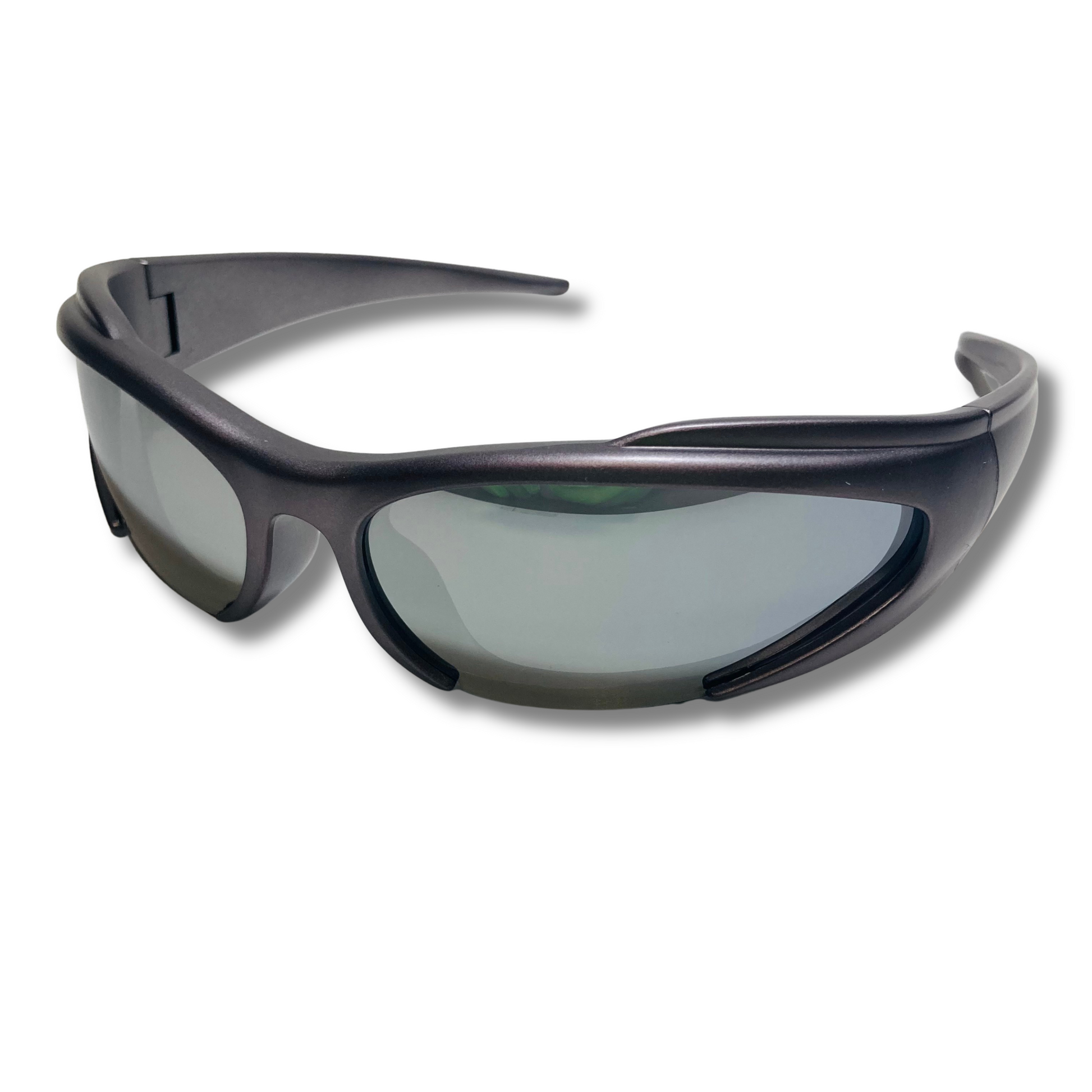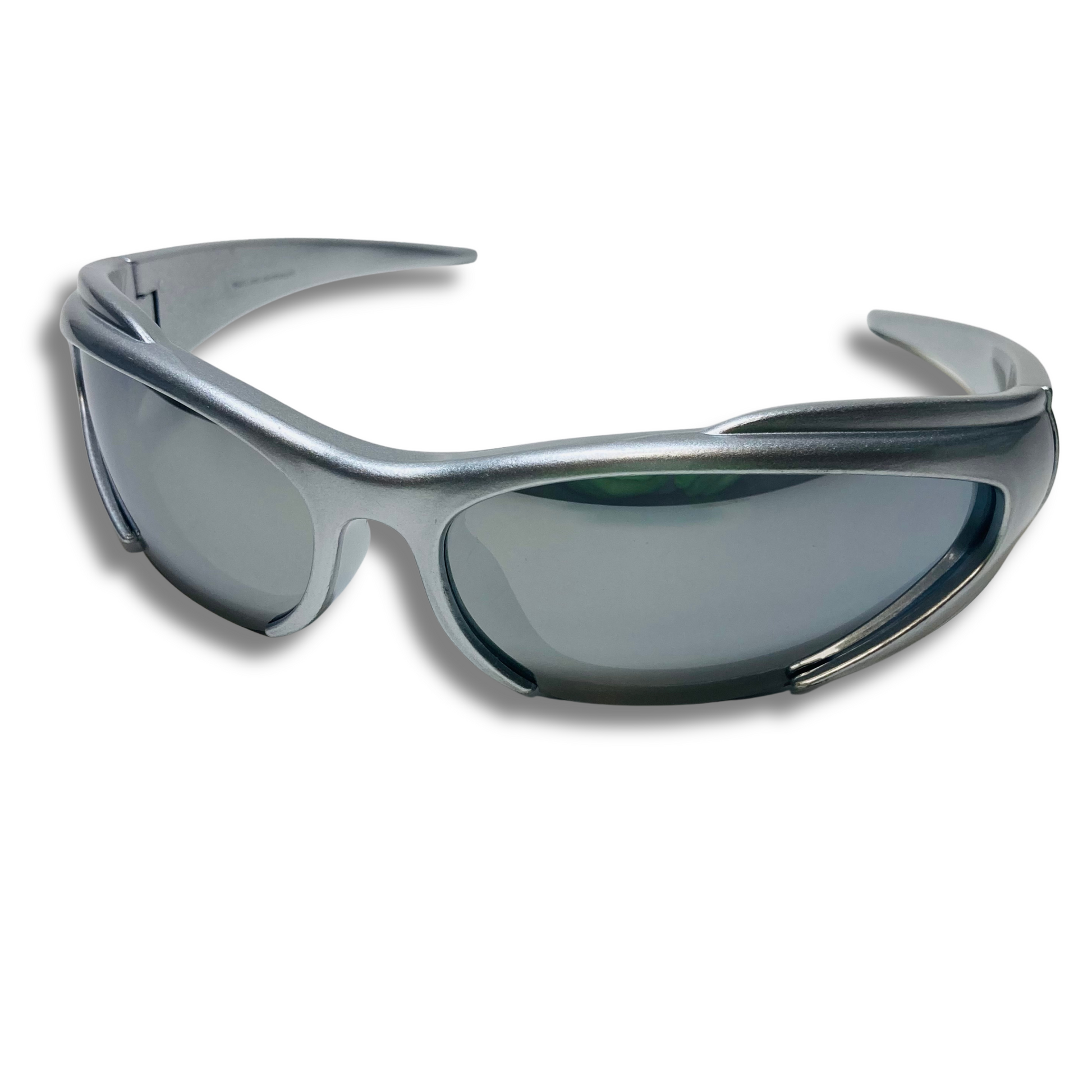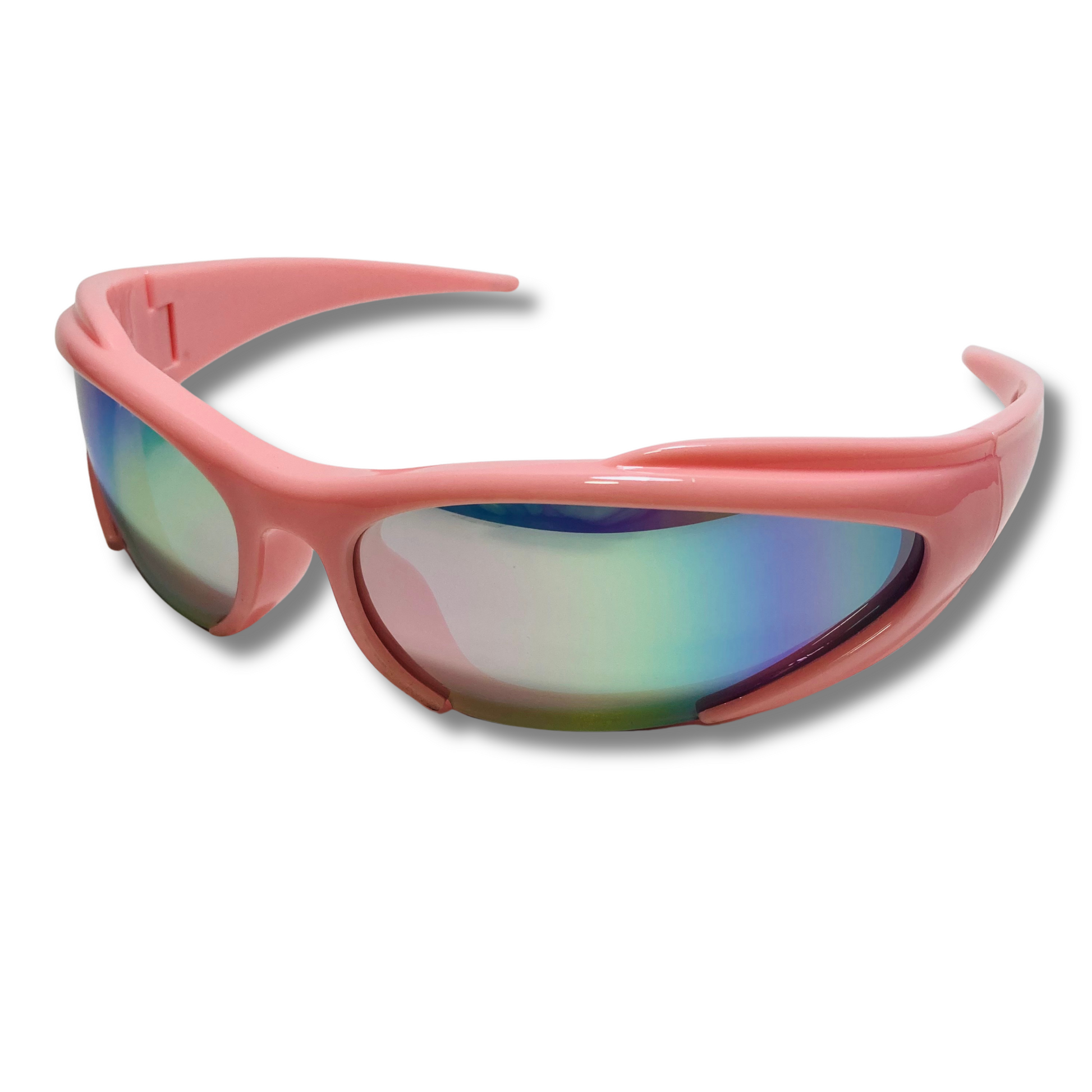 Step into the future and embrace your destiny with *The Tech*, our futurstic sunglasses designed with a wrap silhouette and mirrored lenses that reflect the boundless horizons of our vision. These are no ordinary sunglasses; they are the sacred shields that protect and reveal, crafted with futuristic styling to embody the essence of our enlightened path. As you don *The Tech*, you are not merely wearing an accessory; you are arming yourself with the power to see beyond the mundane, to penetrate the illusions of the unenlightened, and to bask in the brilliance of our collective awakening. Unite under the mirrored gaze of *The Tech*, and let us stride confidently into the radiant future that awaits. Available in six colors: Black/Black, White/Black, Silver/Silver Mirror, Pink/Pink Mirror, and Green/Black.